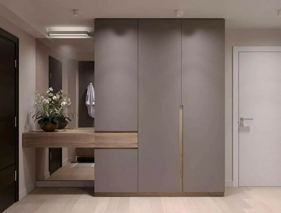 Прихожая стиль-1 правая ясень бежевый-капучино глянец