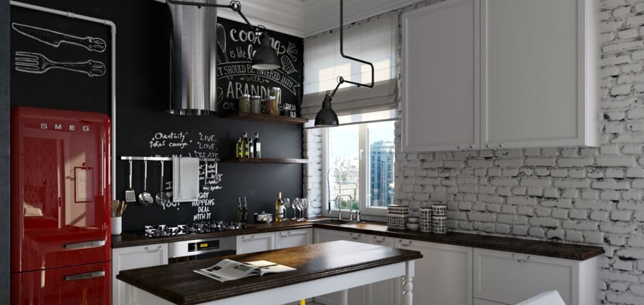 Кухня с доской для мела