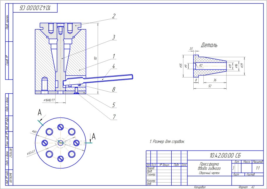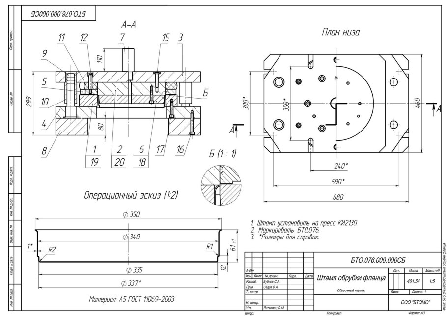 Сборочный чертеж штампа вытяжного