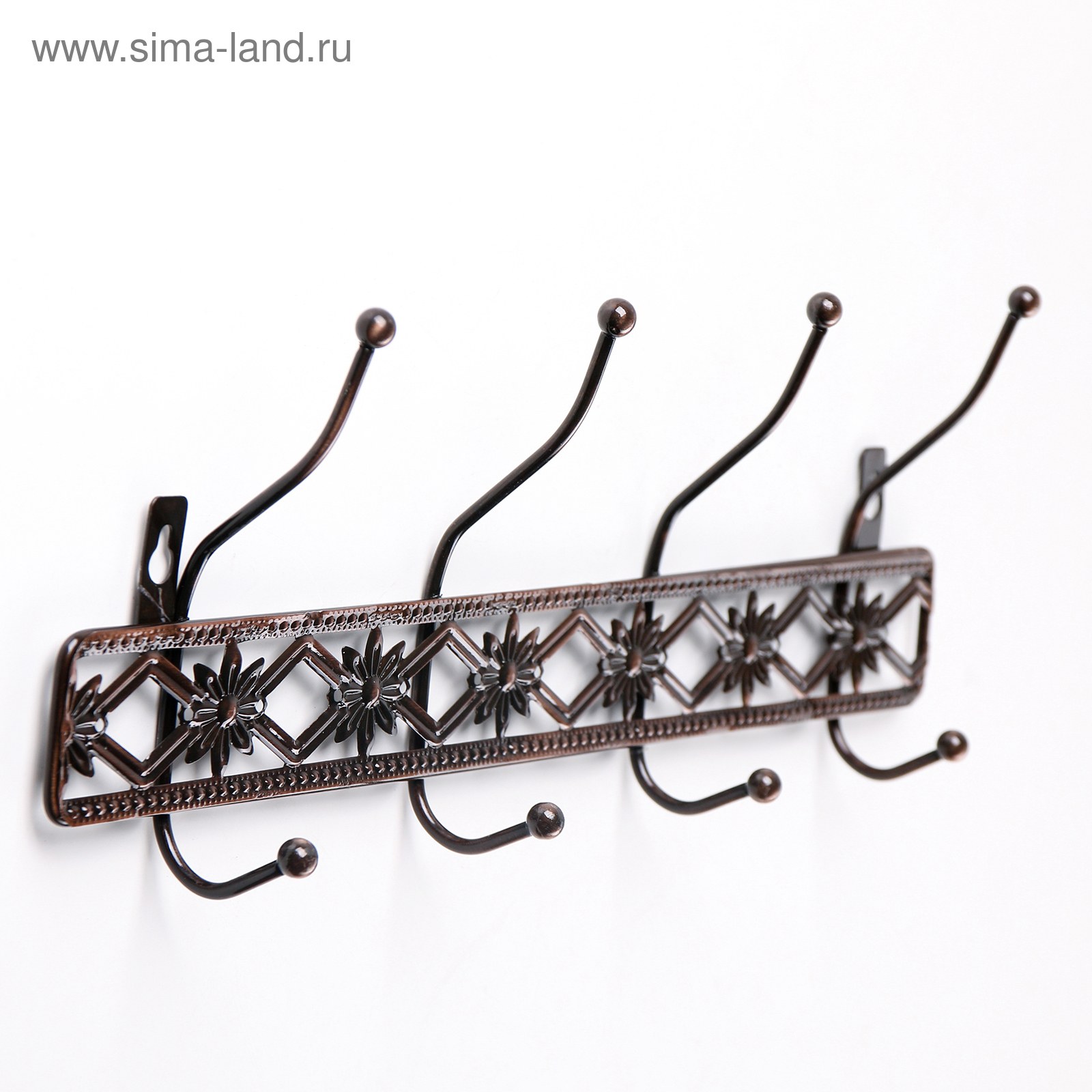 Вешалка Сима ленд 8x3x34 см 4 крючка для полотенец