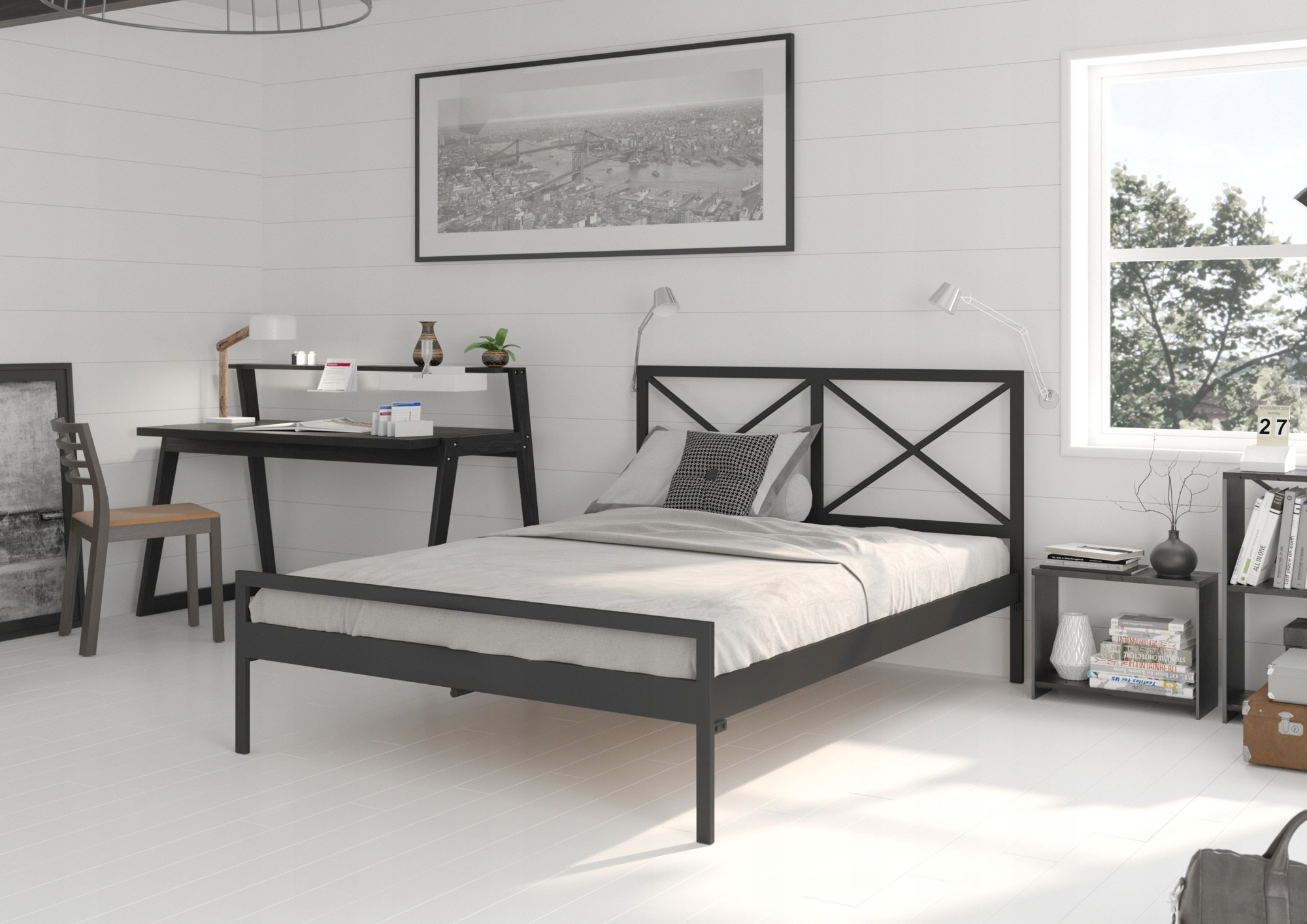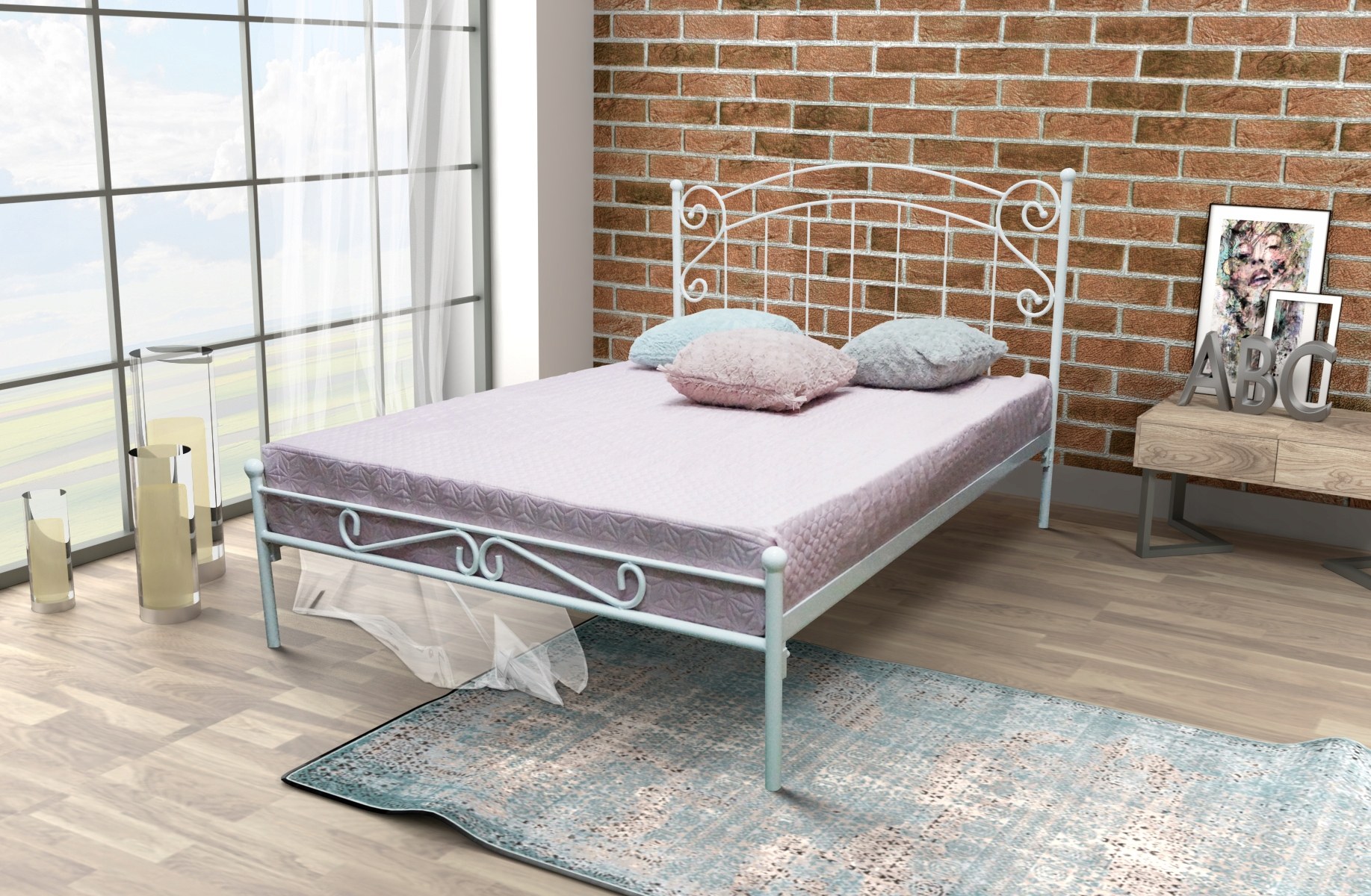Металлическая двуспальная кровать с матрасом (71 фото)