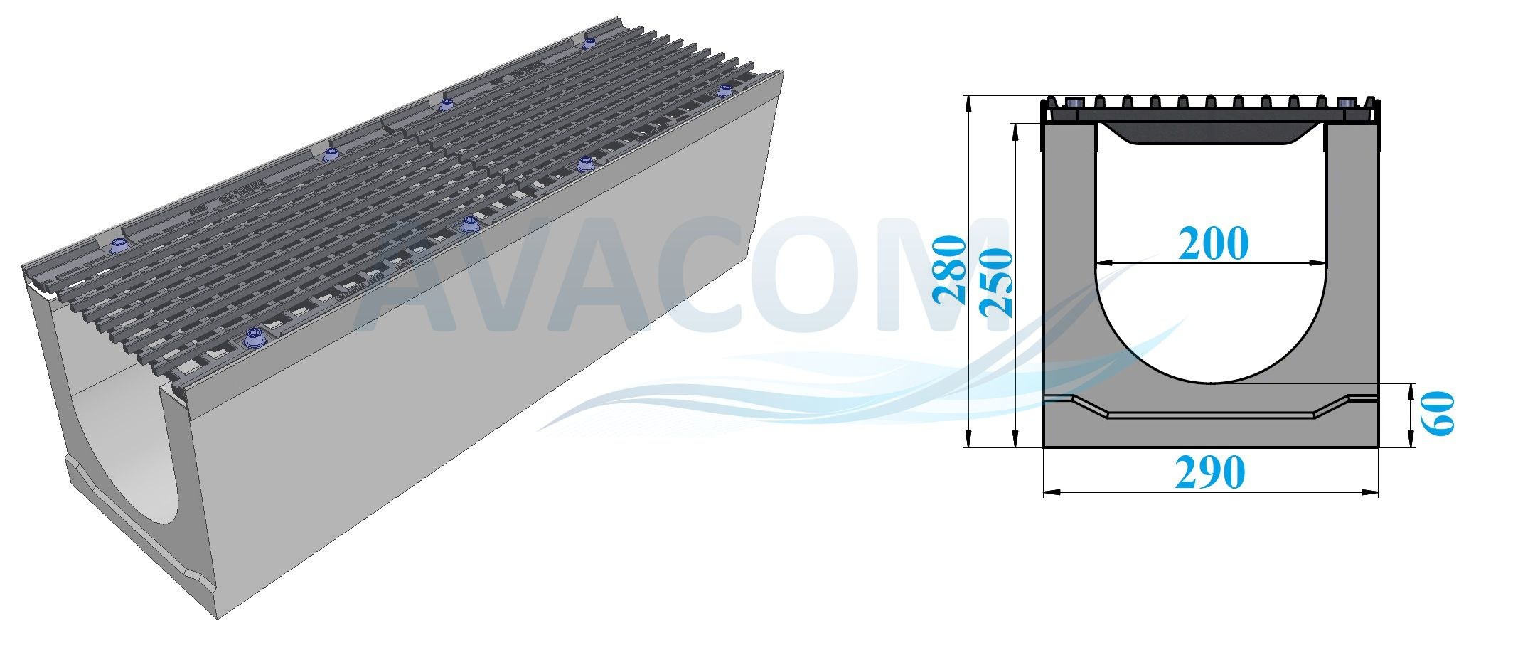 Лоток водоотводный POLYMAX Basic лв-10.16.12-ПП
