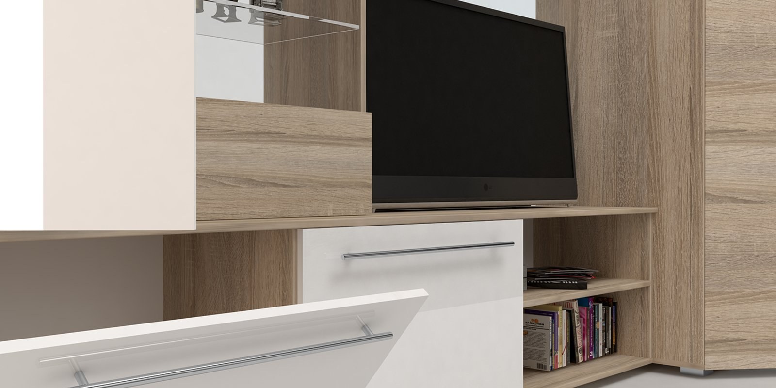 Стенка Бруно дуб сонома/белый глянец