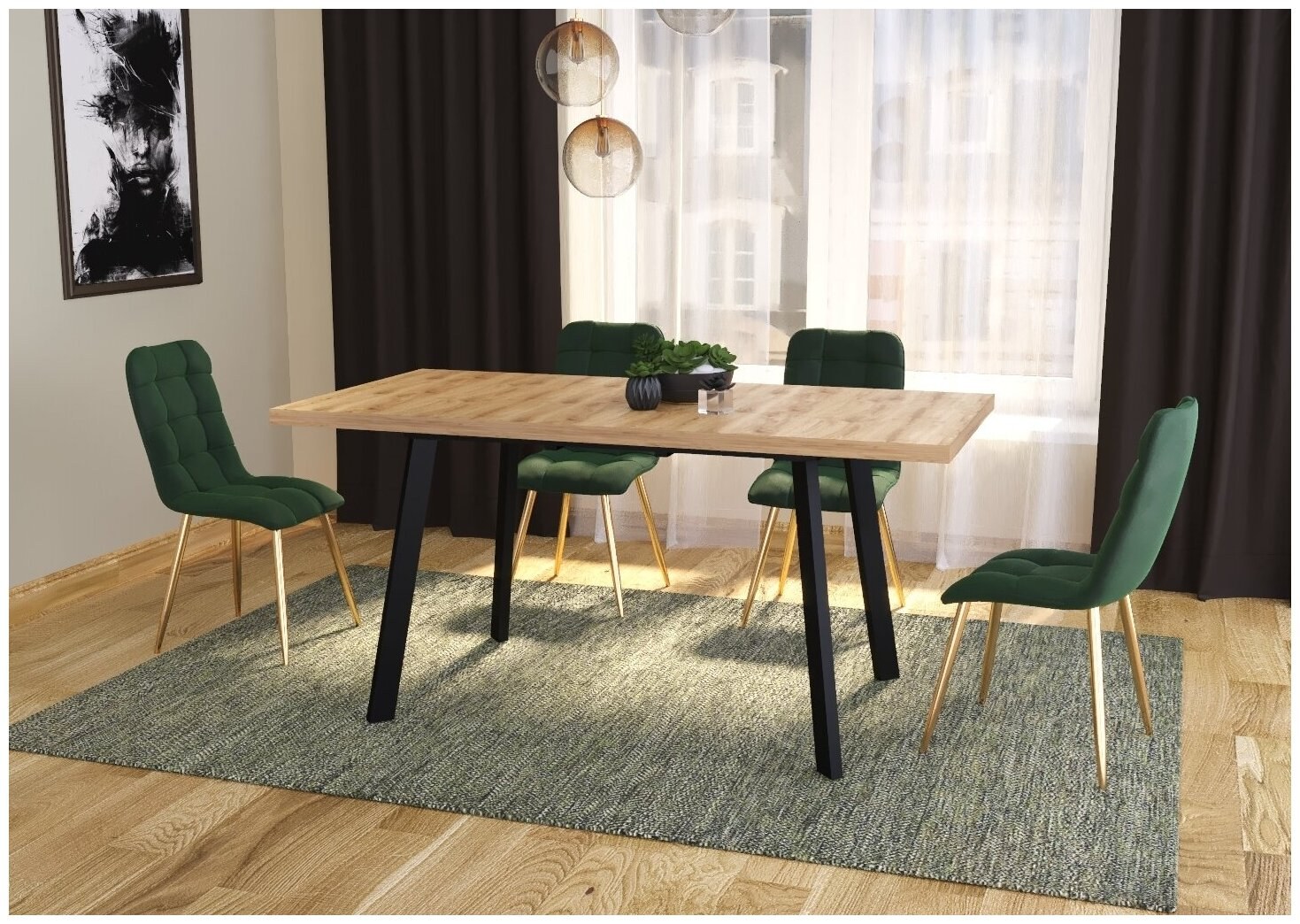 Стол Oslo раскладной 120-160x80x75см, дуб Навара, чёрный