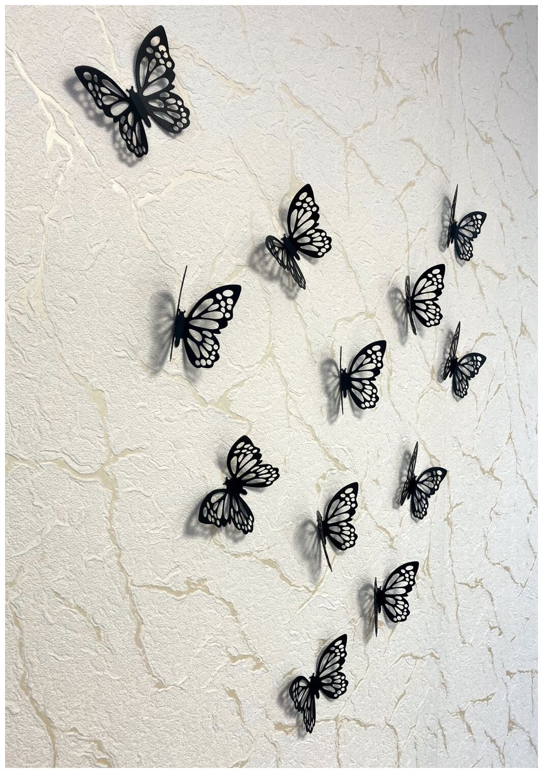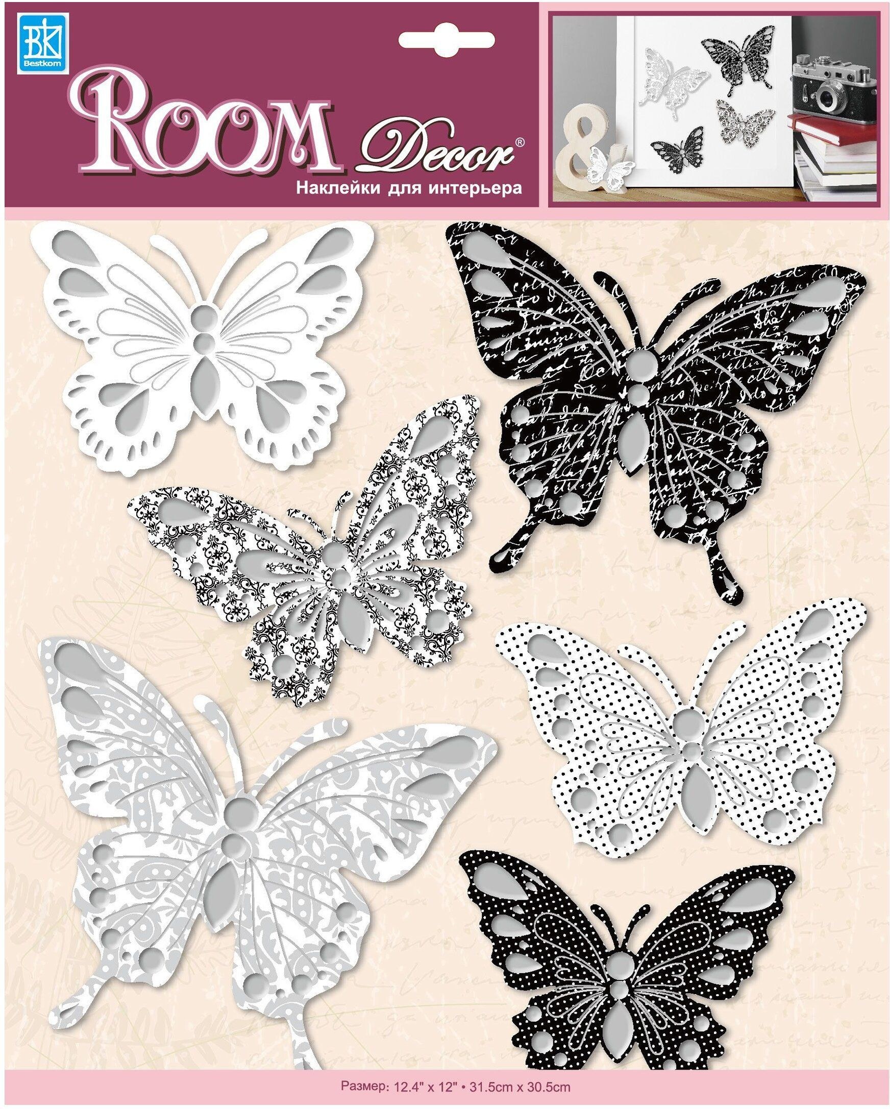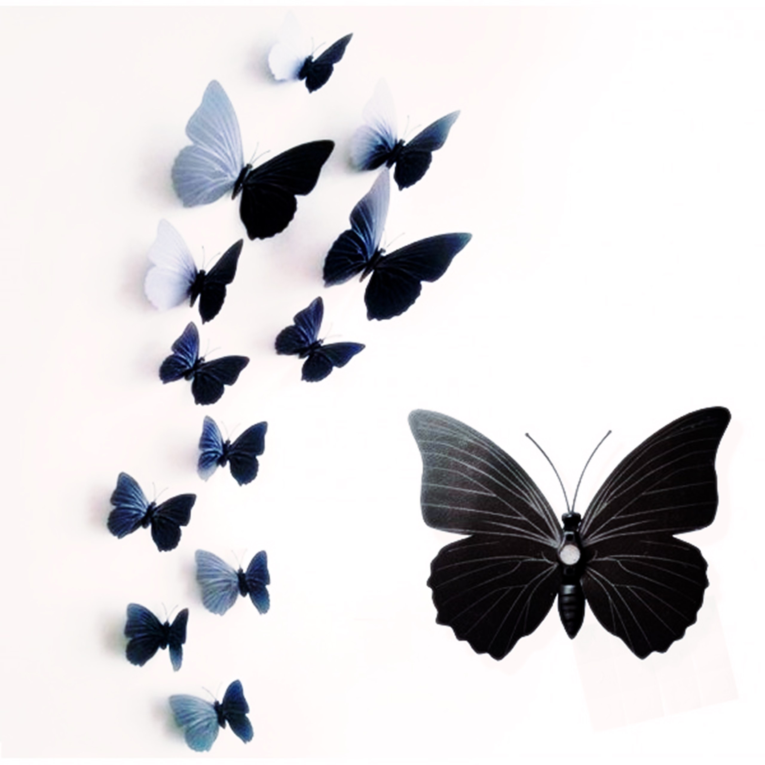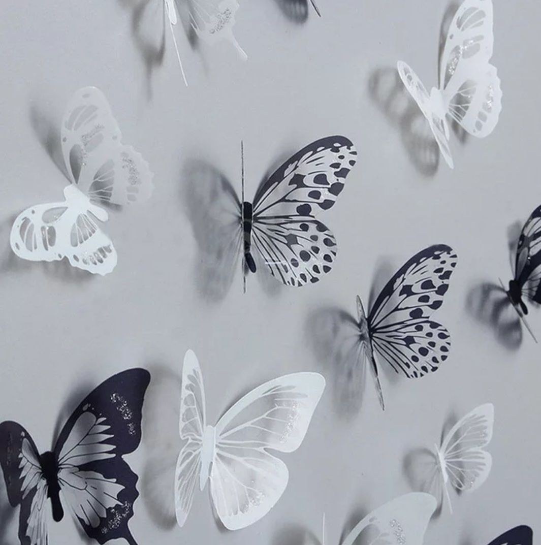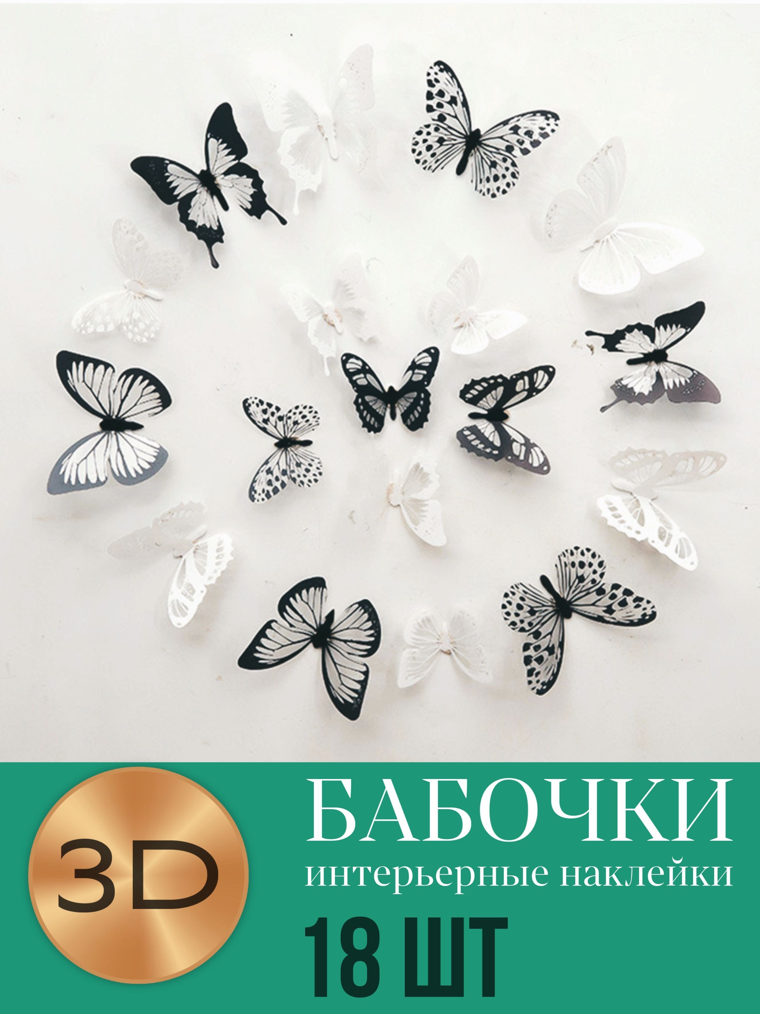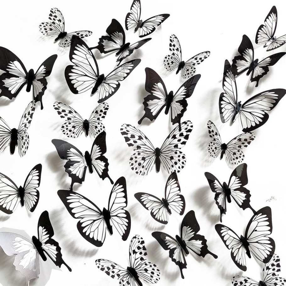 3д наклейки бабочки на стену белые чёрные хрустальные