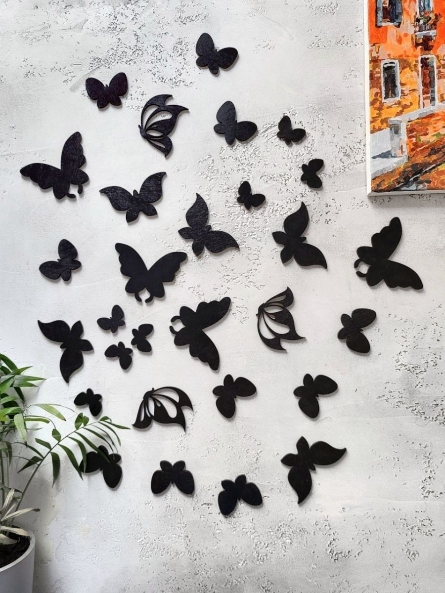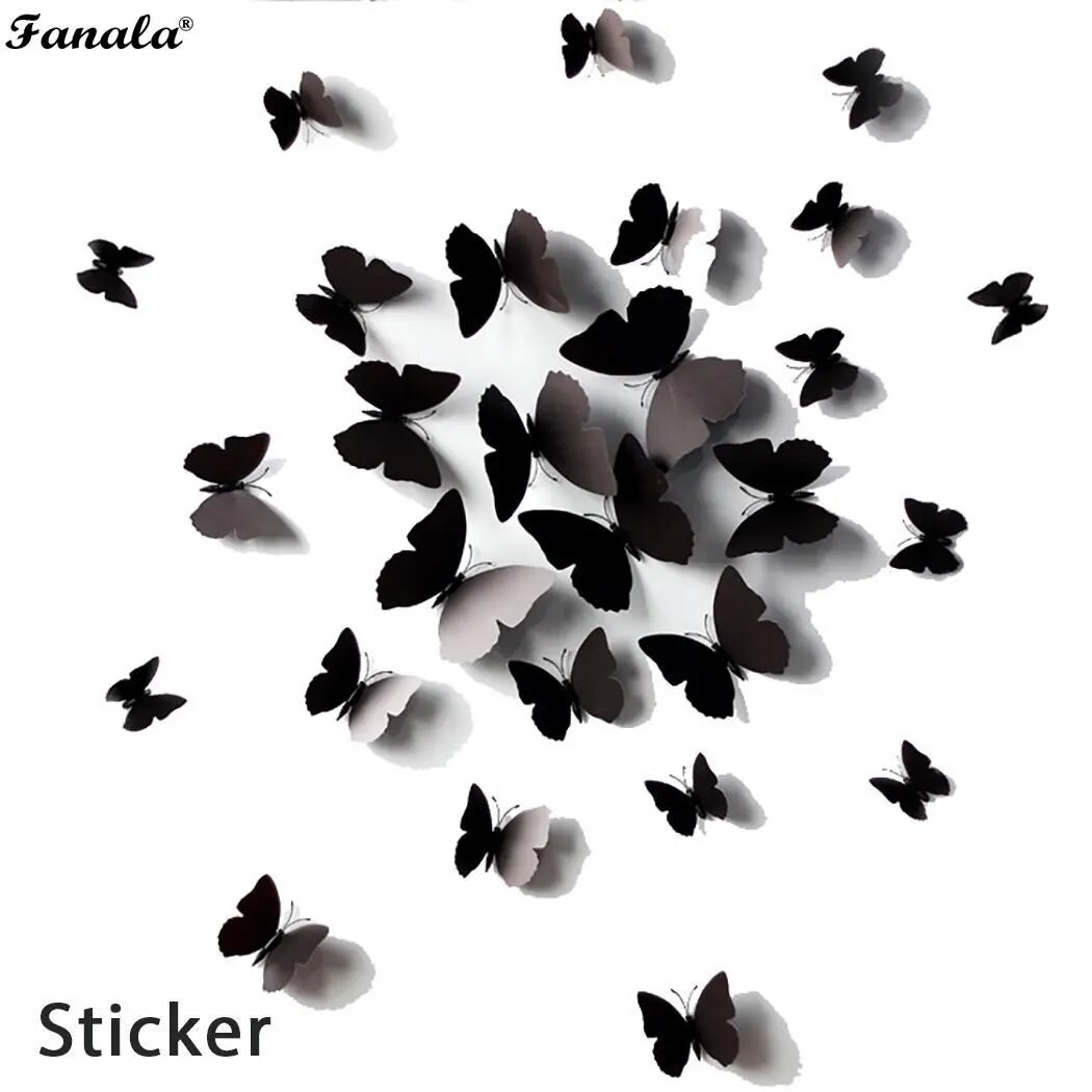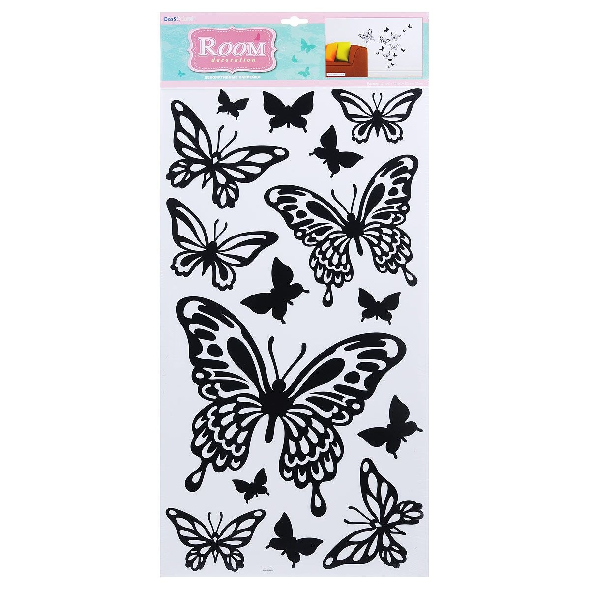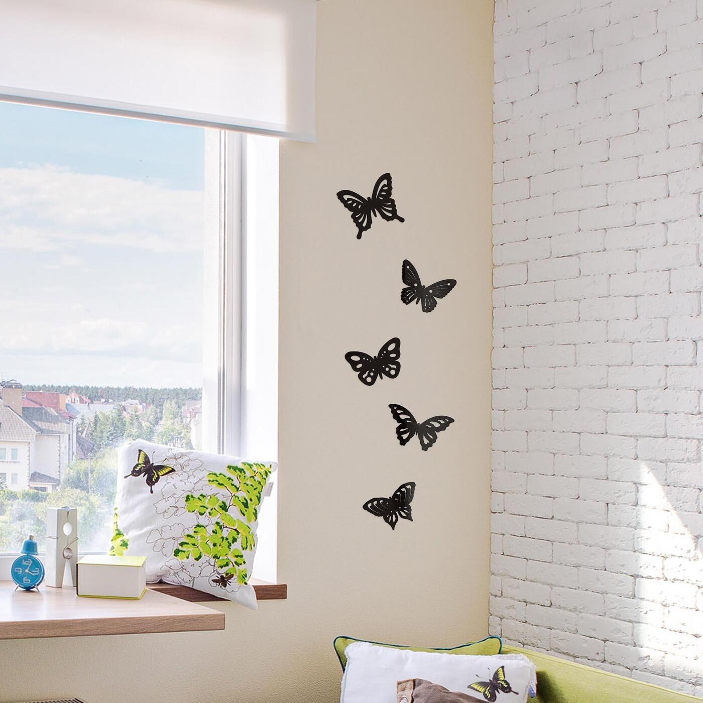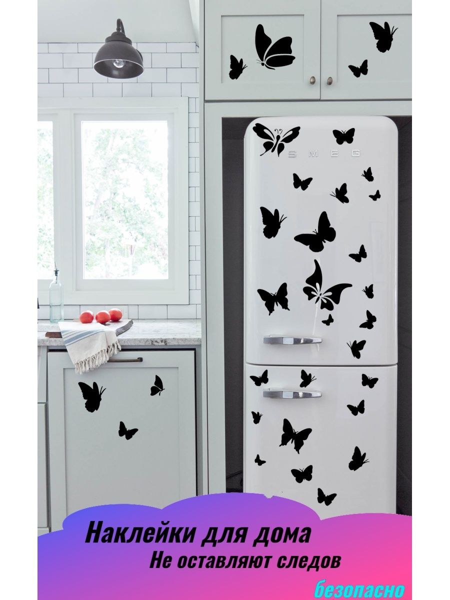 3д наклейки бабочки на стену белые чёрные хрустальные