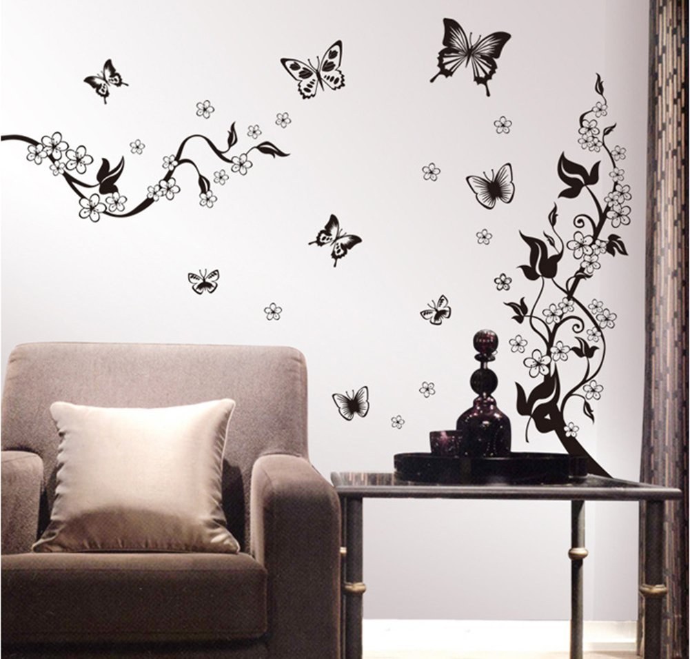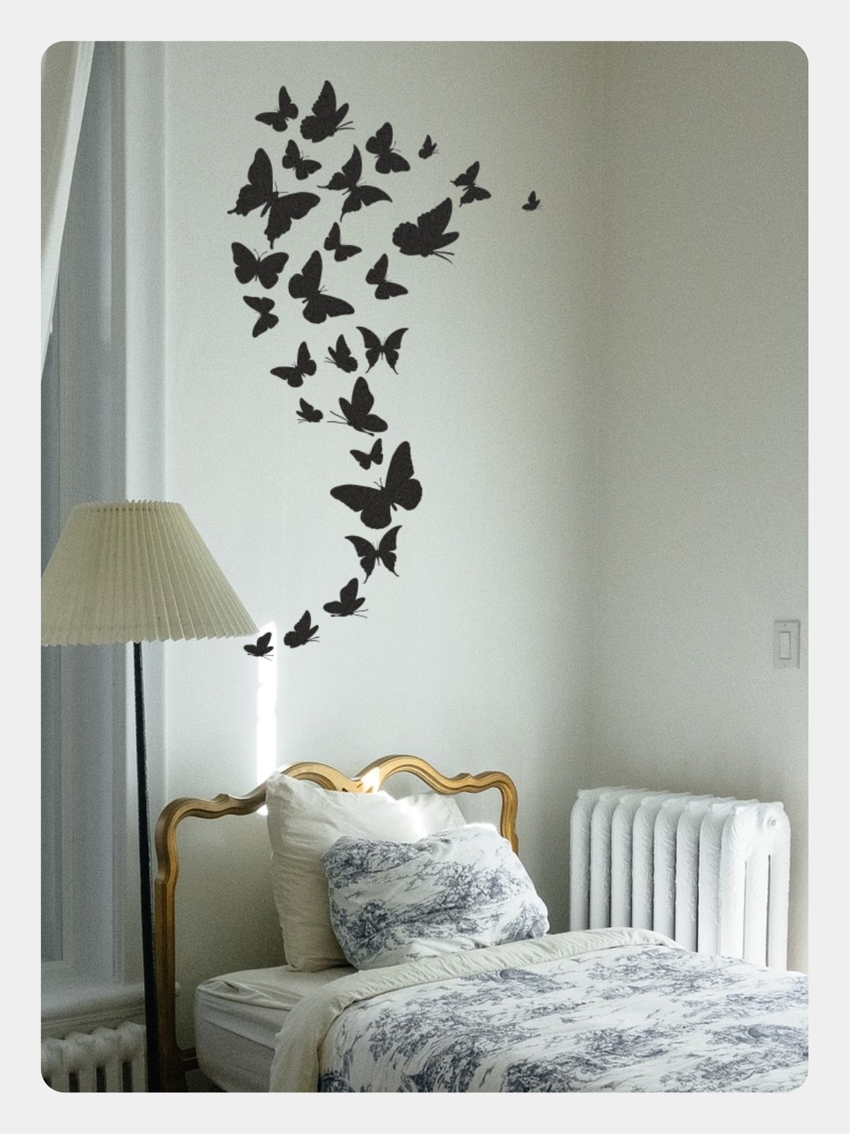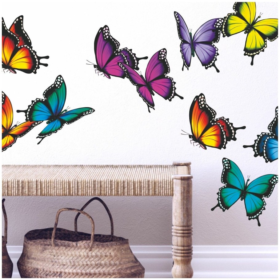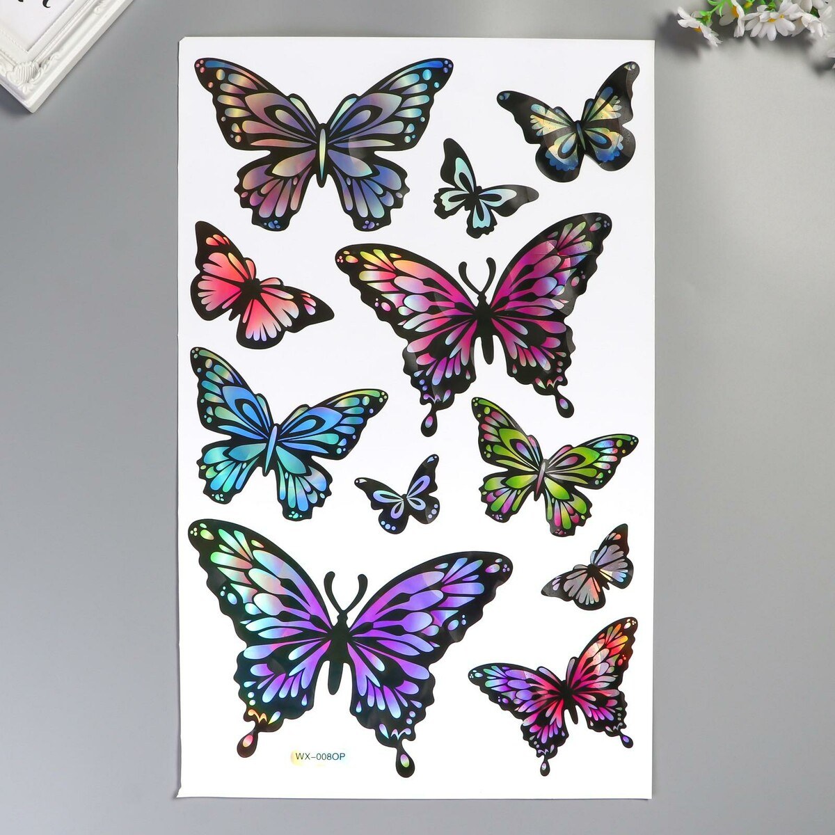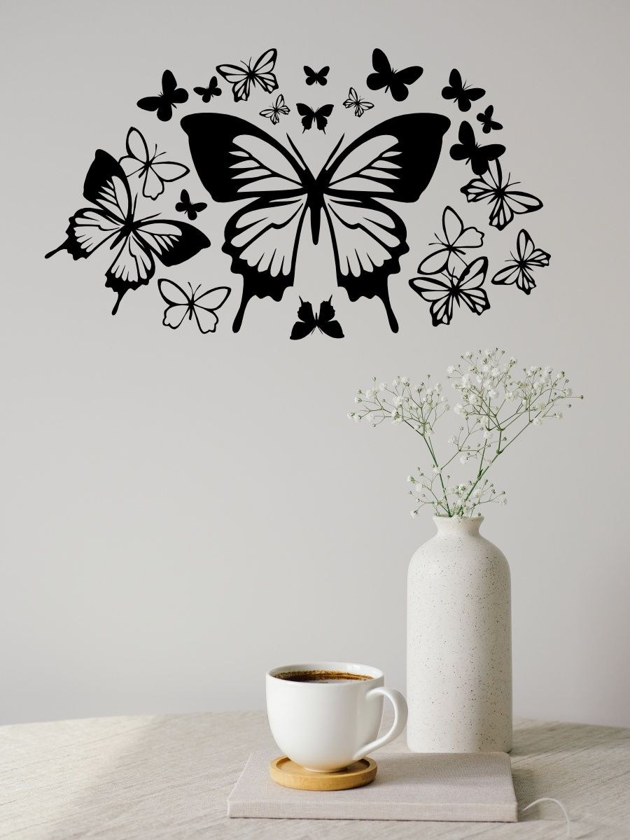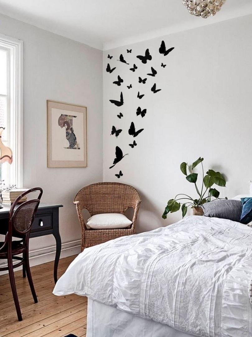 3д наклейки бабочки на стену белые чёрные хрустальные