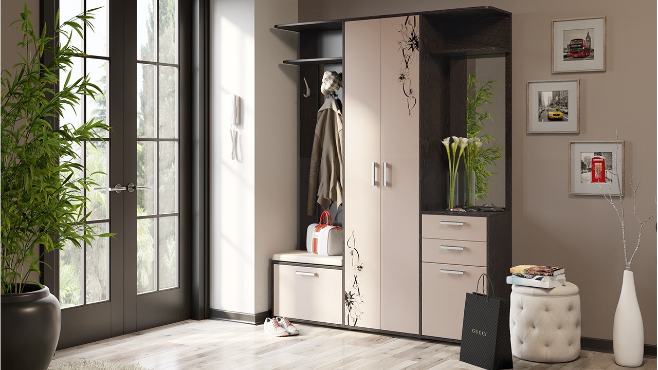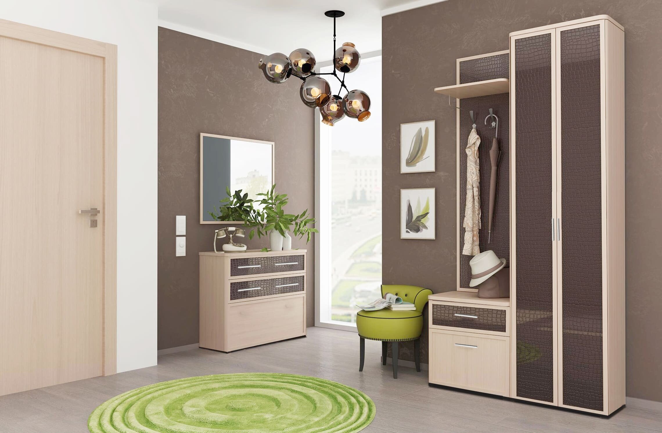 Прихожая стиль-1 правая ясень бежевый-капучино глянец
