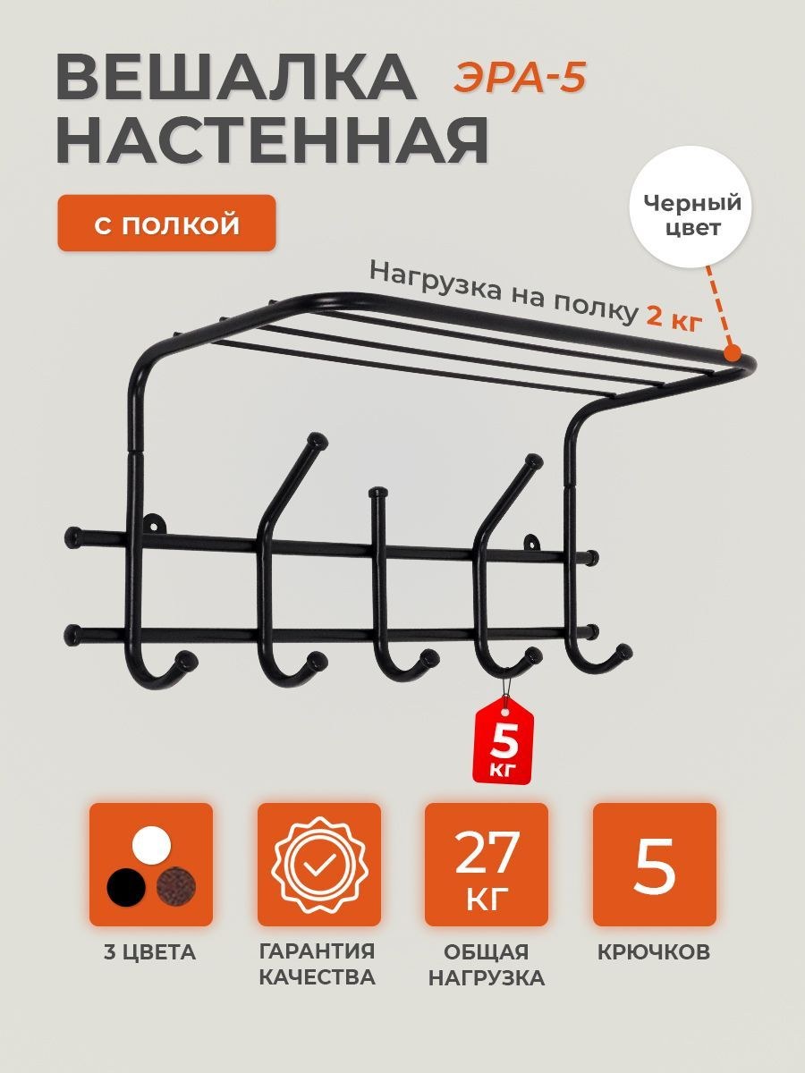 Вешалка ЗМИ настенная всп21в ч с полкой (черный) (5)