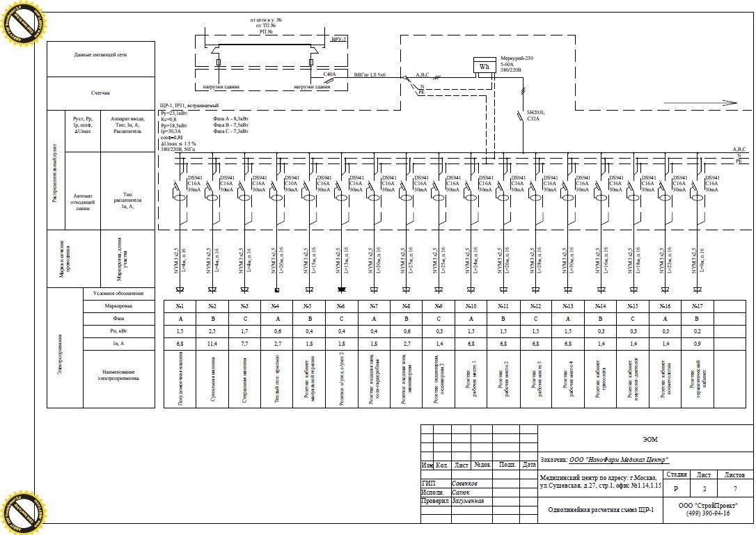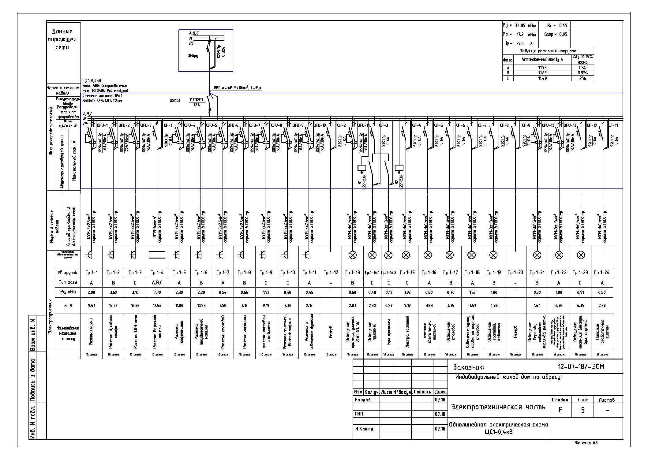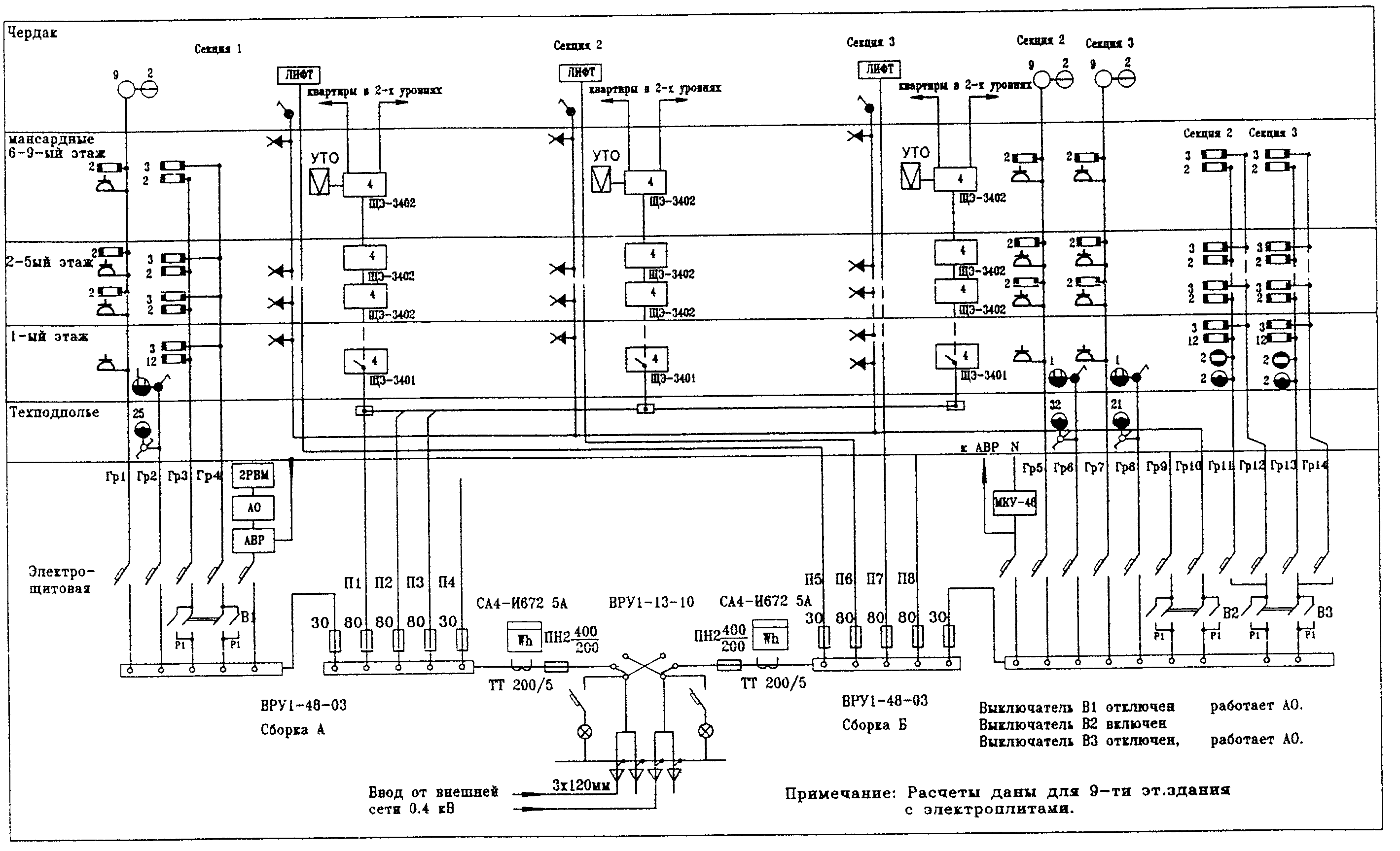 Однолинейная схема электроснабжения многоквартирного жилого дома