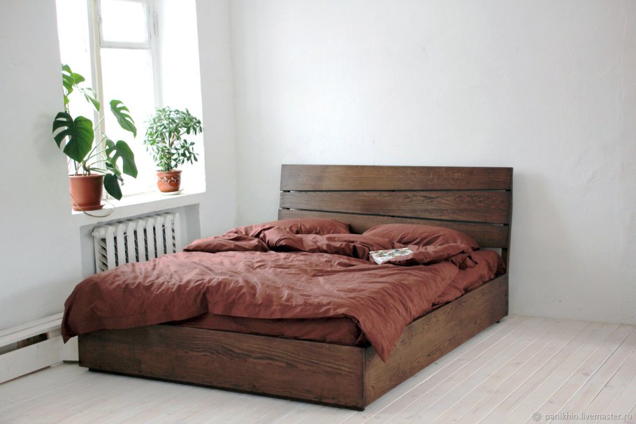 Кровать дубовая с подъемным механизмом (70 фото)