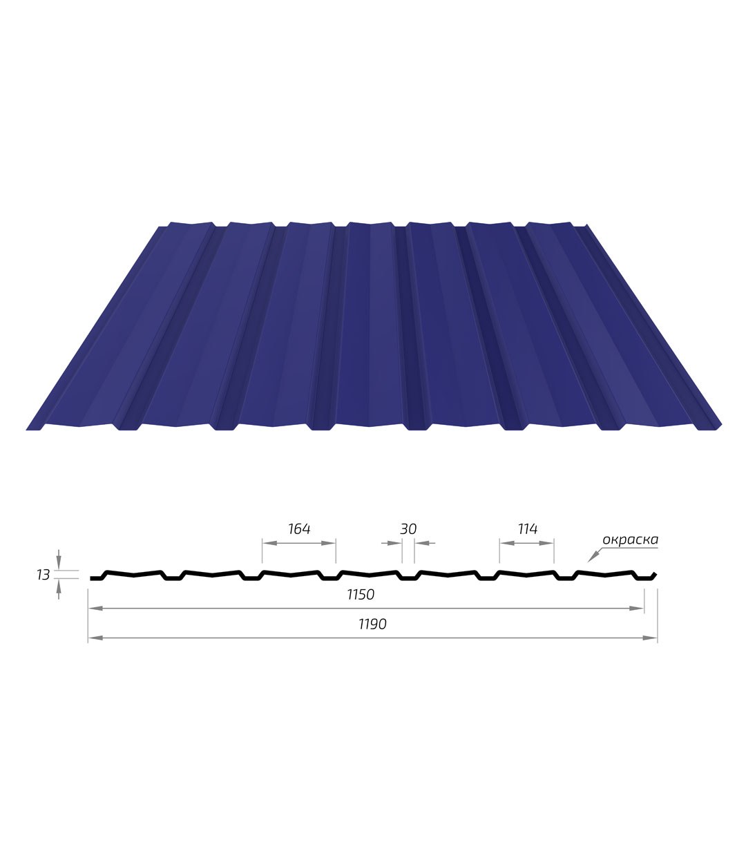Профнастил с8 0.35 мм 1200х2000 мм синий RAL 5005