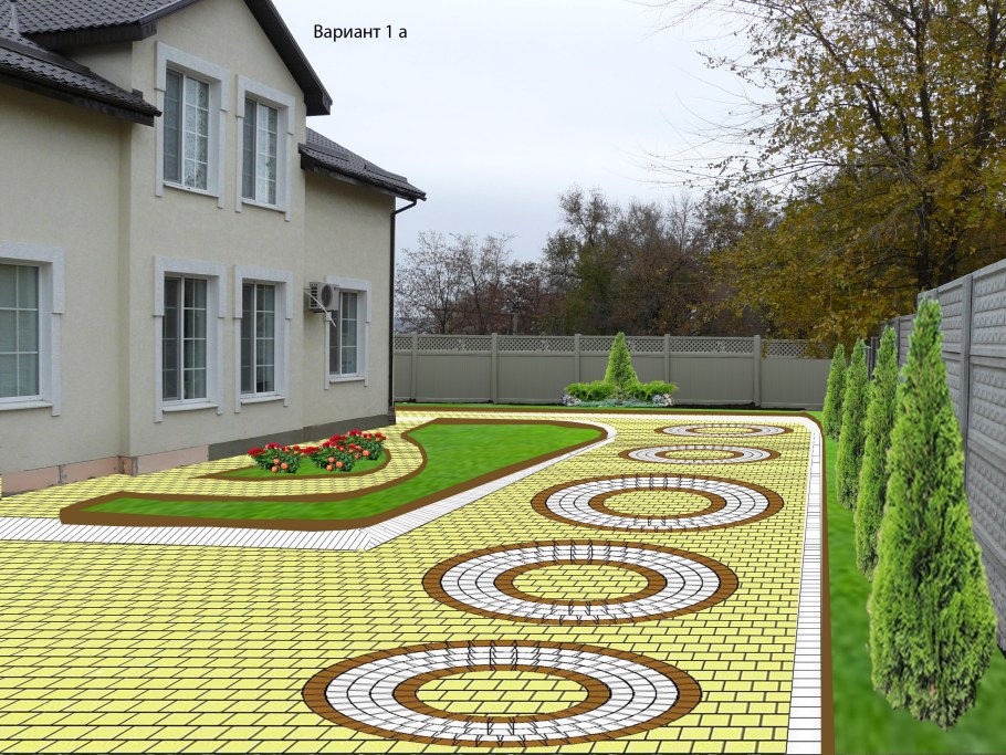 Дизайн брусчатки во дворе частного дома (63 фото)