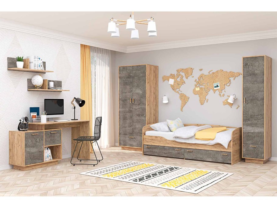 Шкаф МСП 1 трехстворчатый дуб золотой/камень