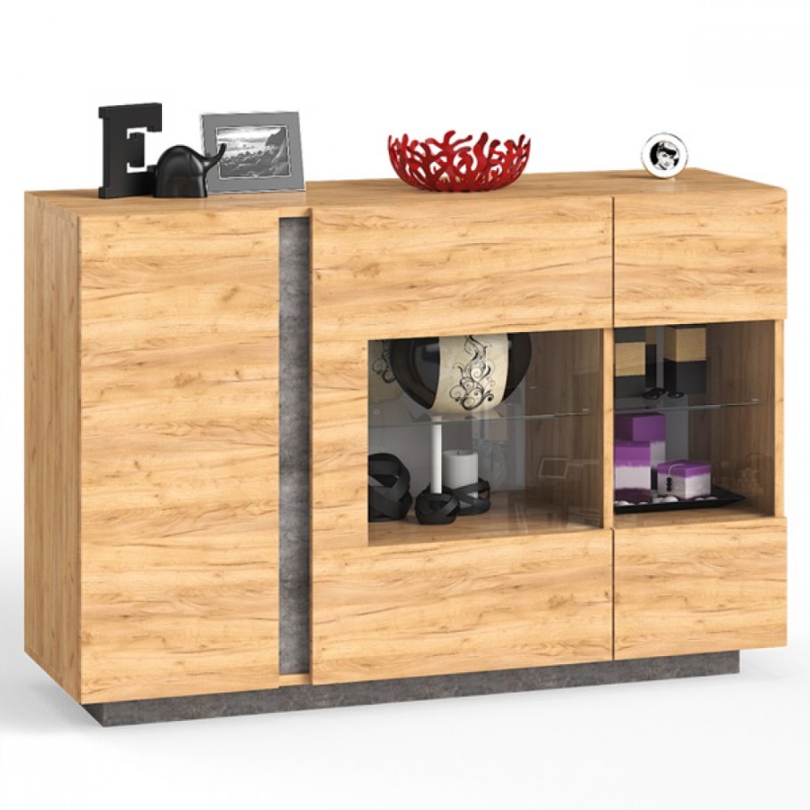 Комод дуб крафт золотой / камень темный