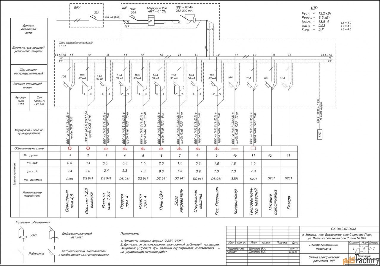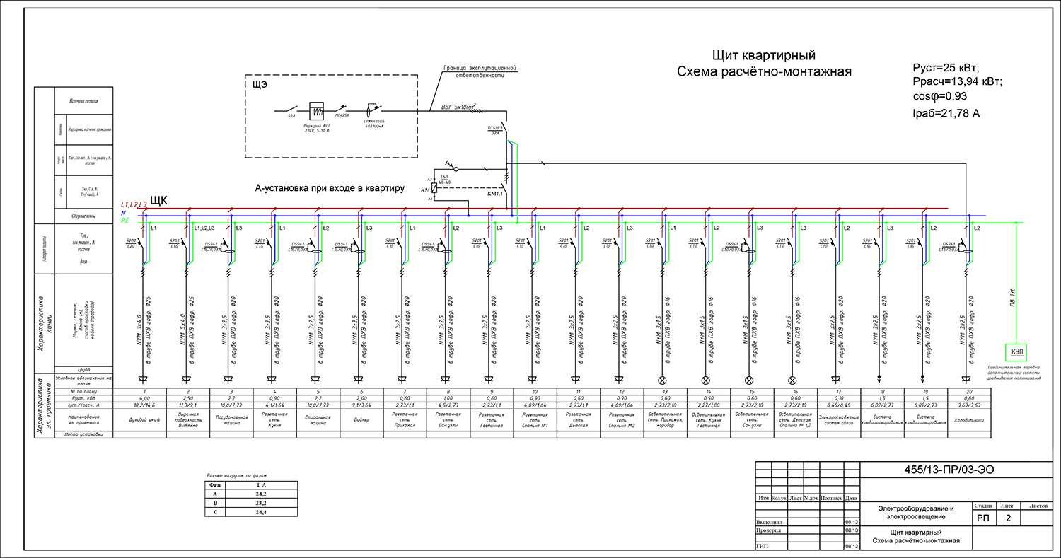 Однолинейная электрическая схема электроснабжения квартиры