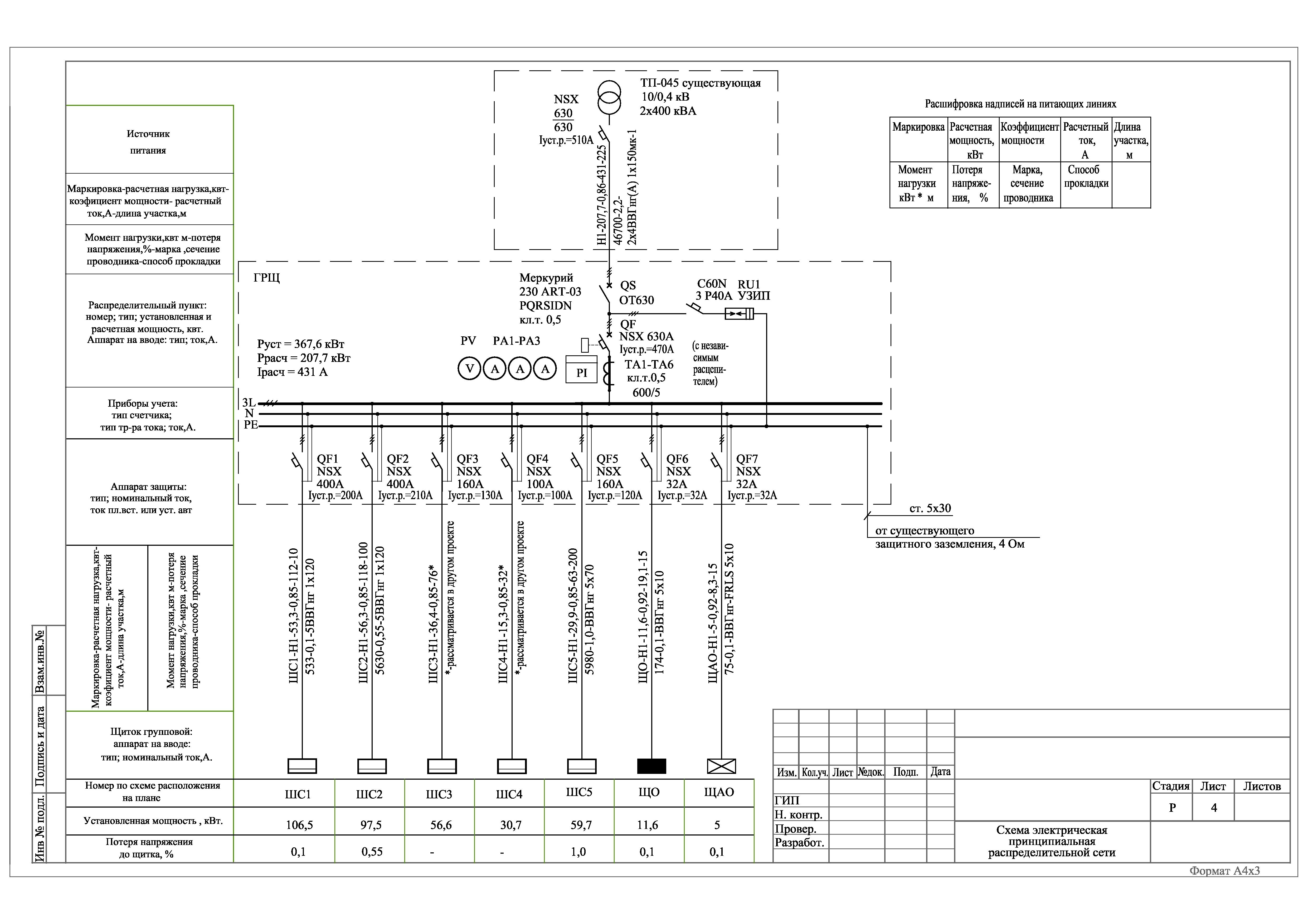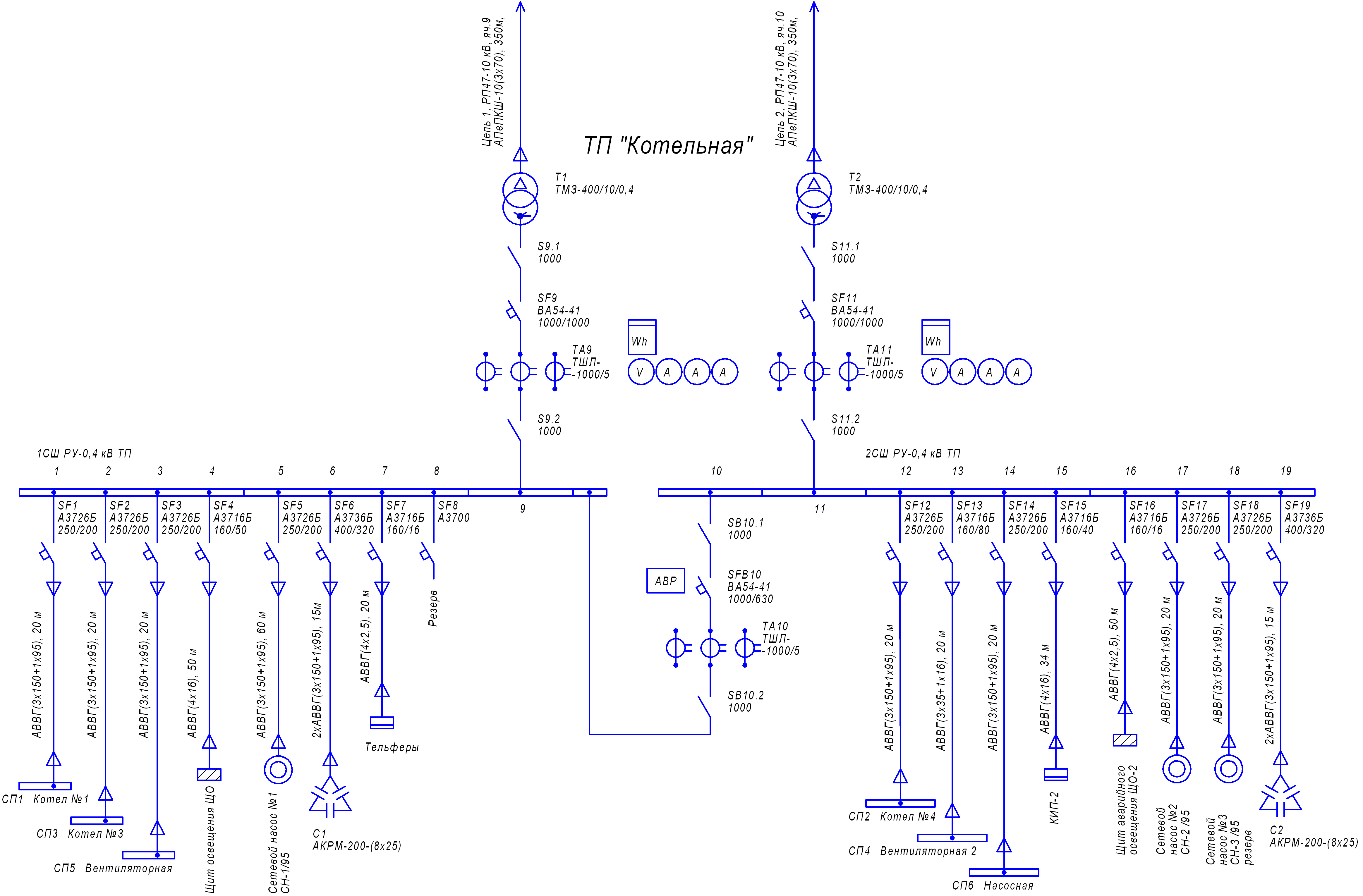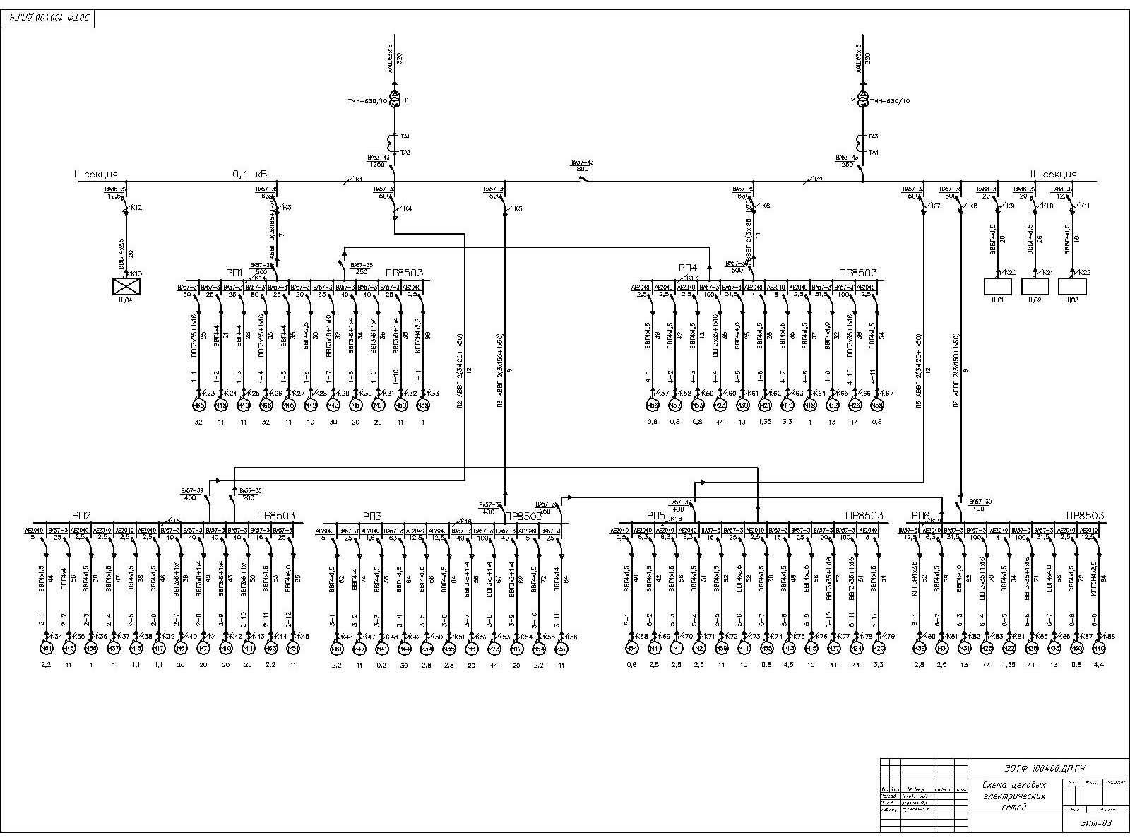 Однолинейная схема электроснабжения 0.4 кв