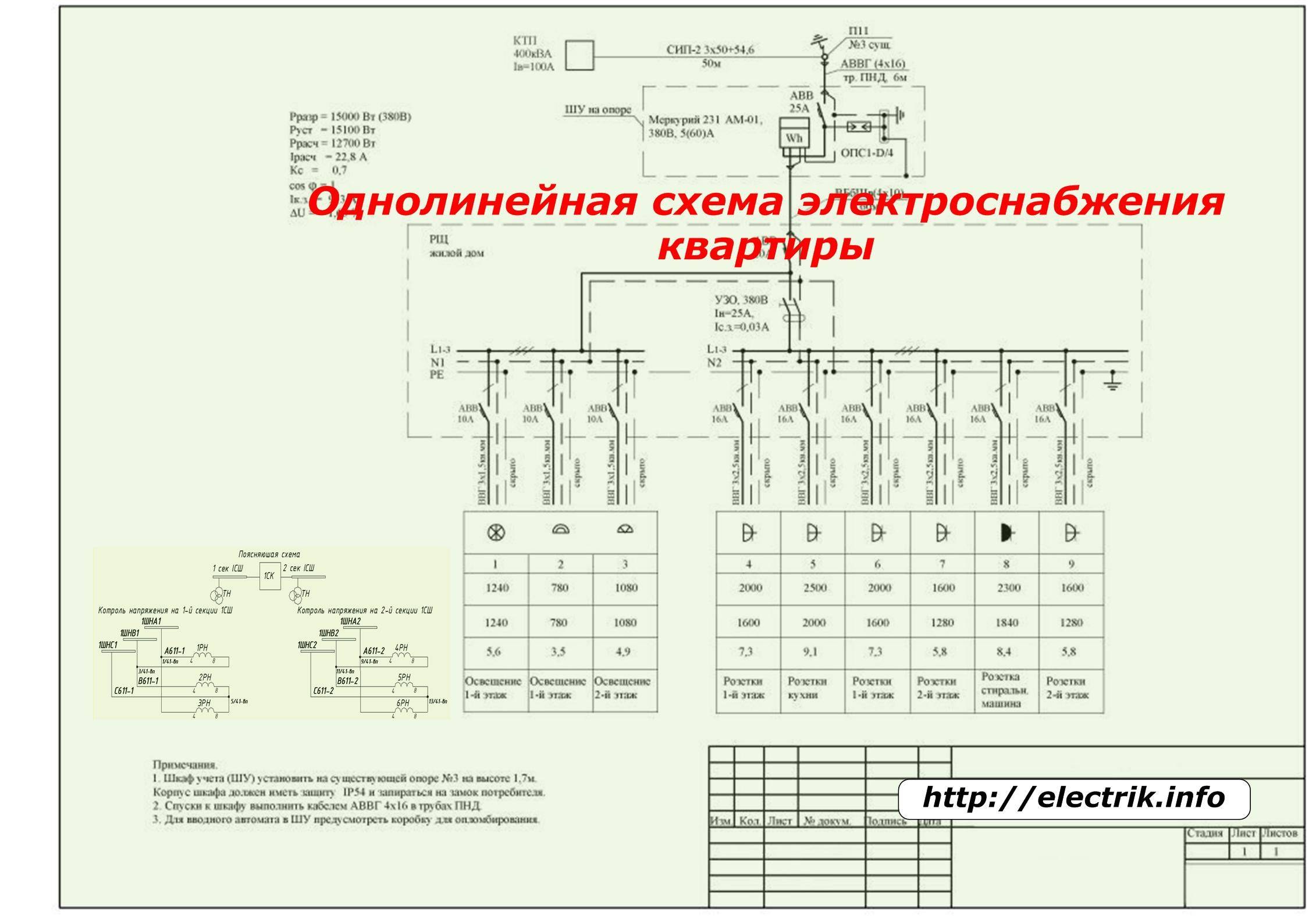 Однолинейная схема электроснабжения жилого дома 380 в