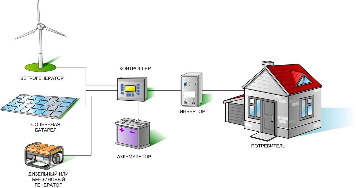 Схема автономного электроснабжения дома от аккумулятора