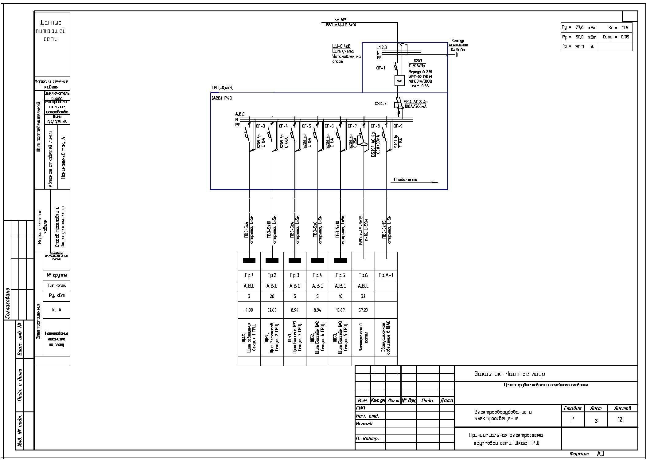 Принципиальная электрическая схема ГРЩ