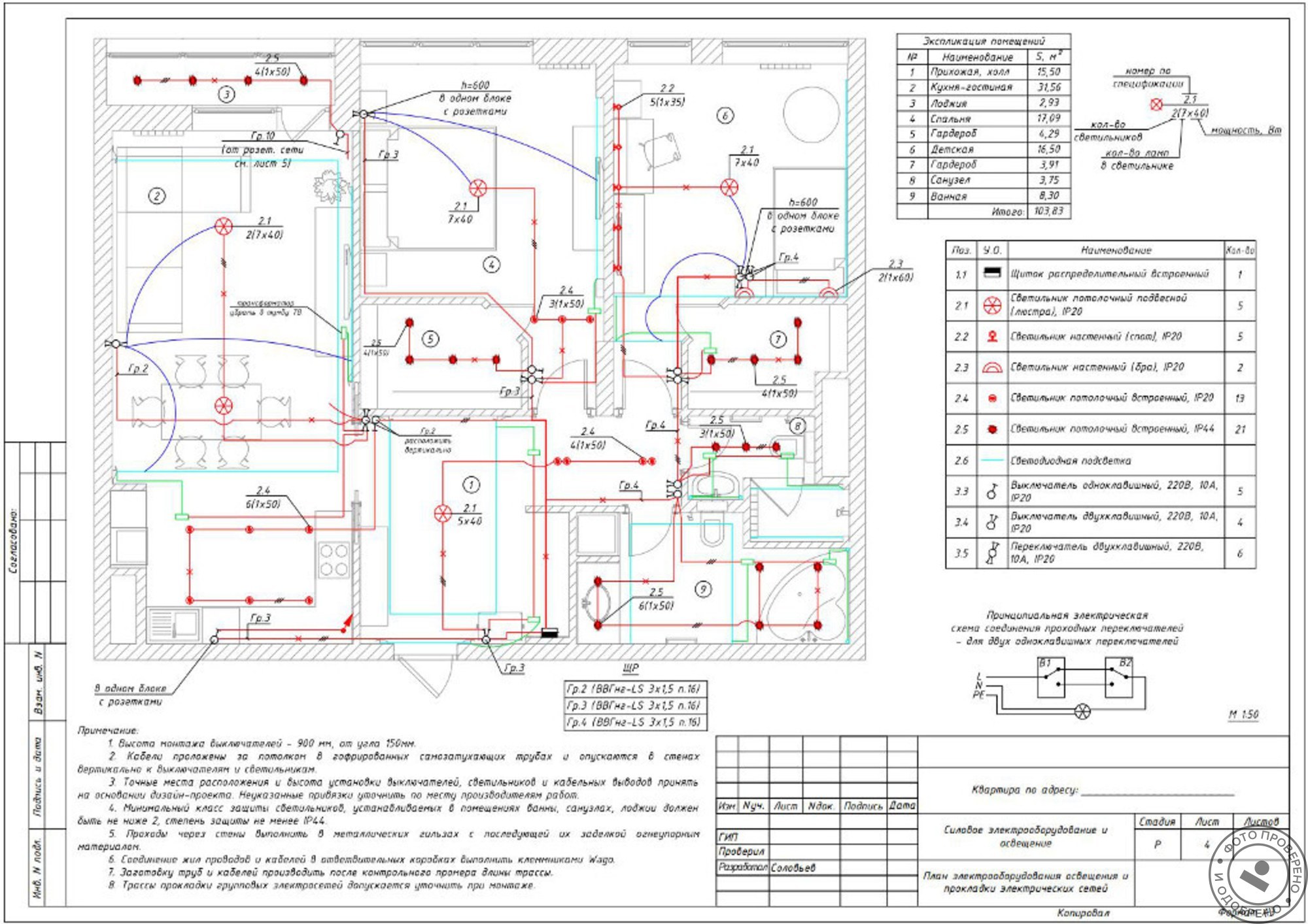 Однолинейная схема квартирной электропроводки