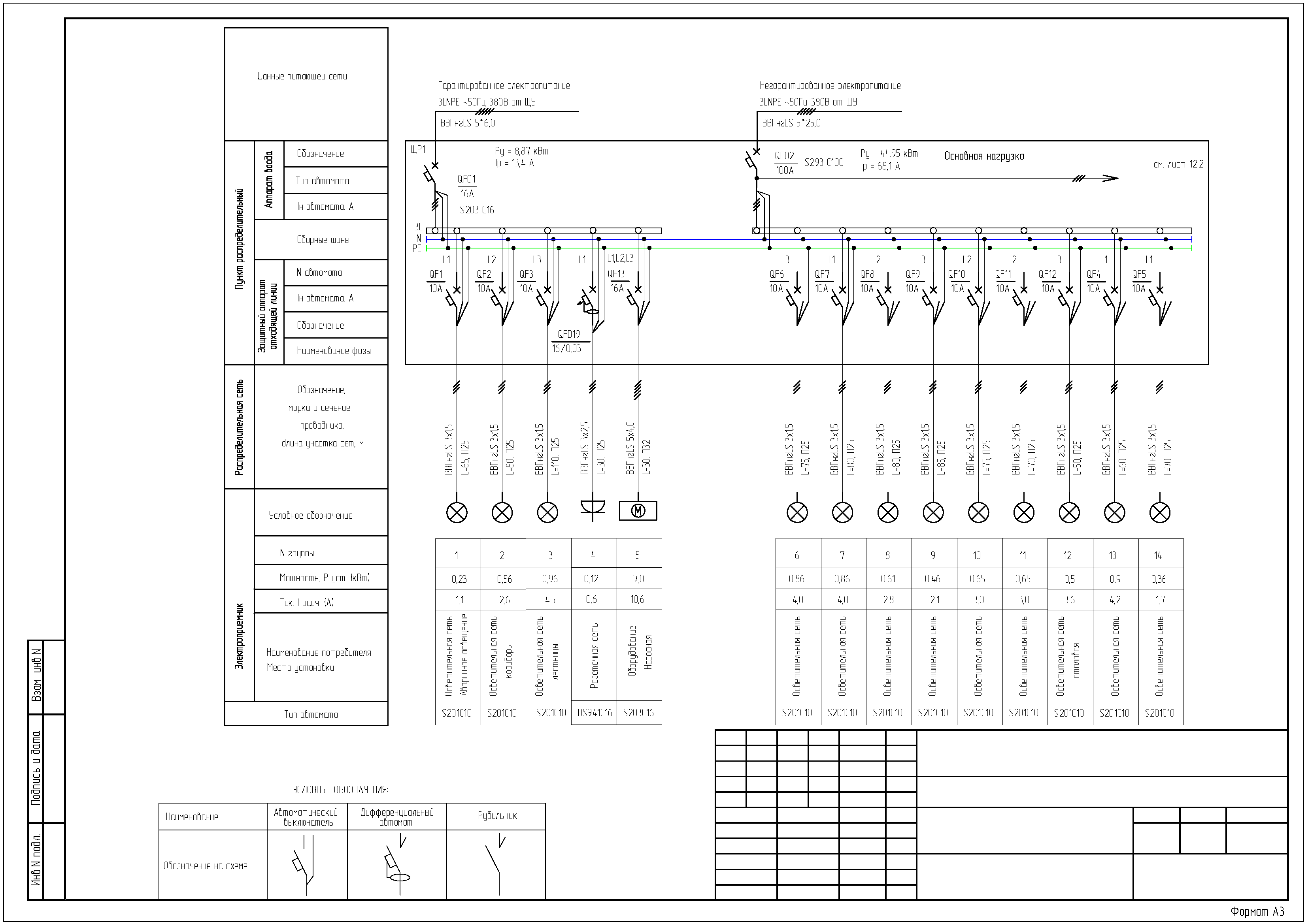 Однолинейная схема электроснабжения распределительного щита