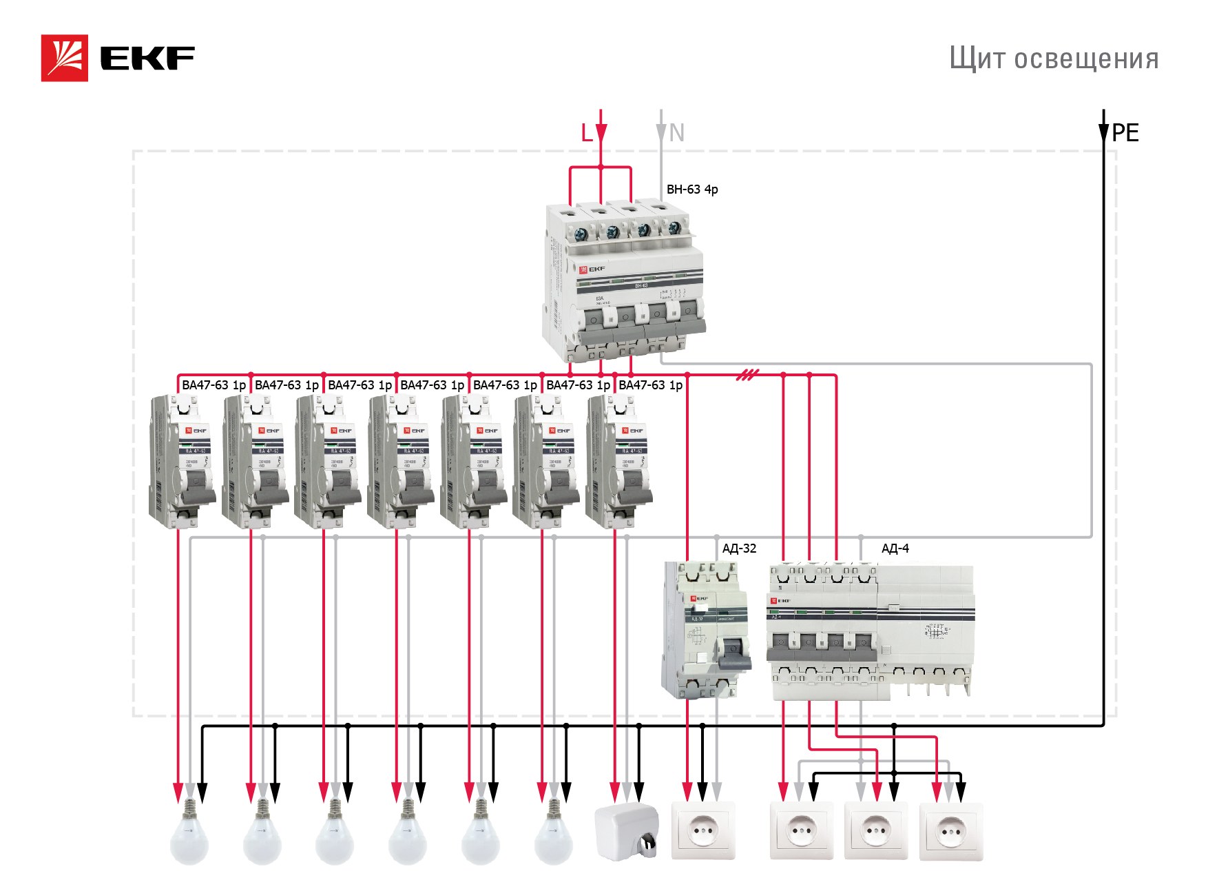 Схема подключения щитка освещения