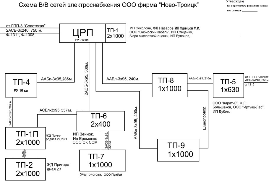 Схема системы электроснабжения потребителей