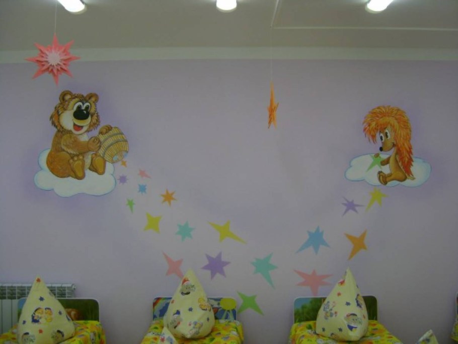 Стены в спальне в детском саду