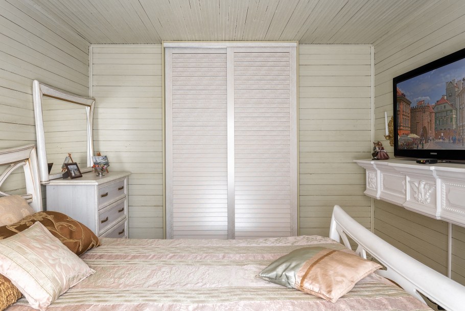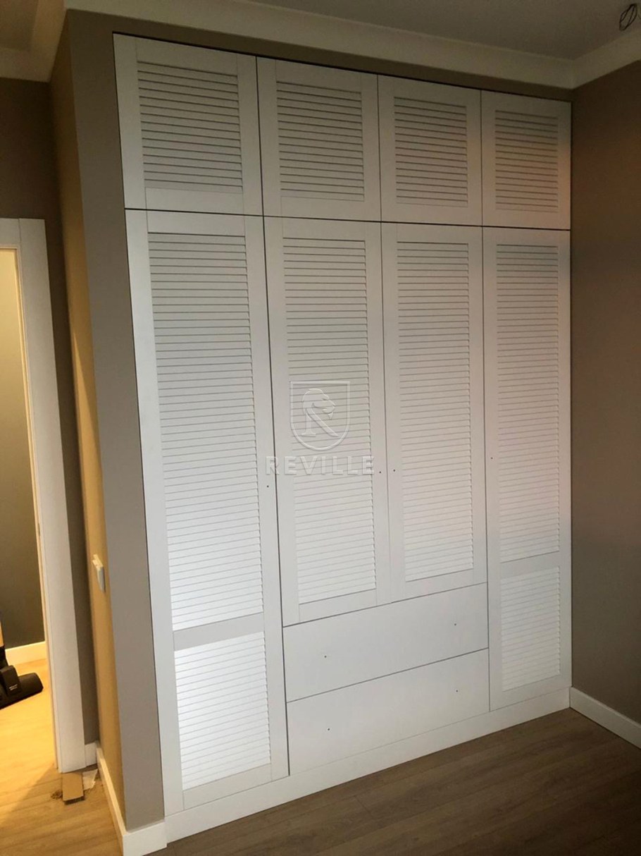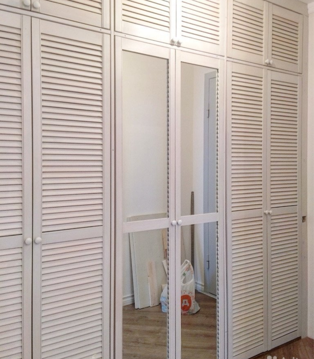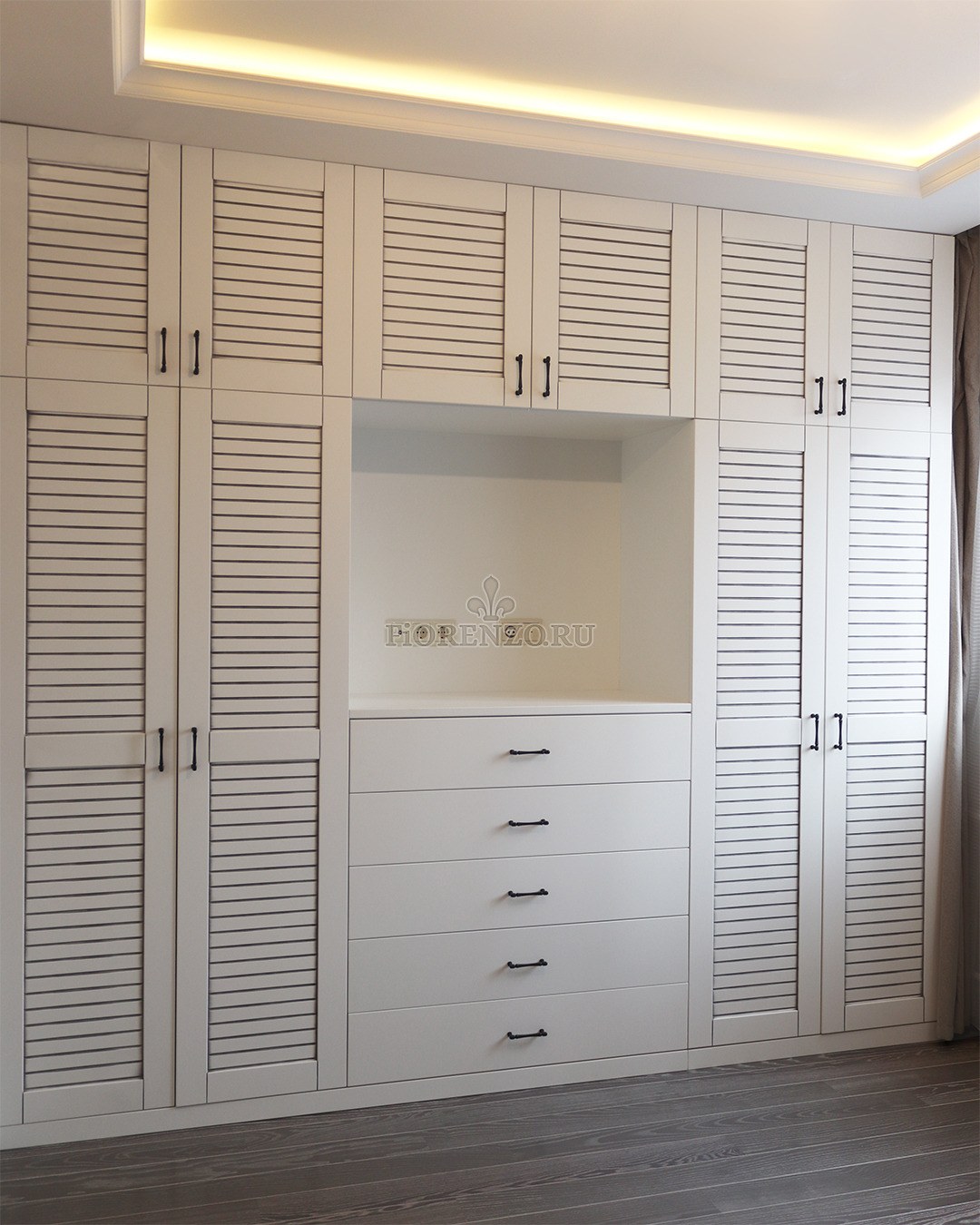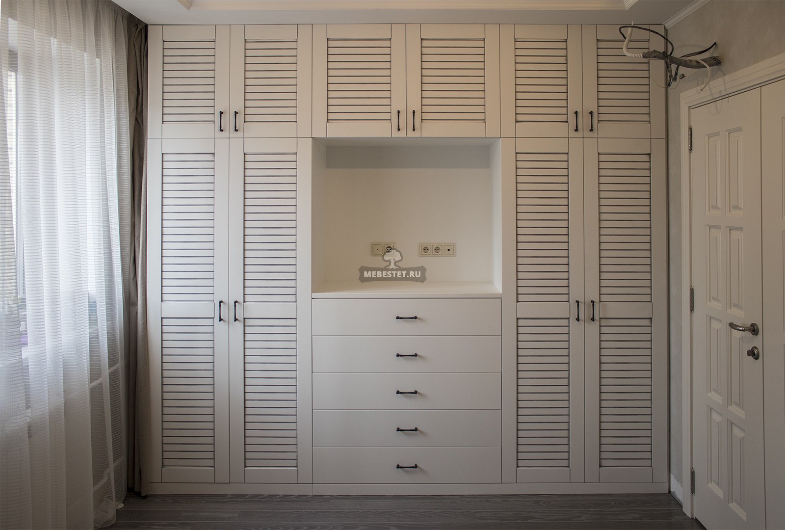 Встроенный шкаф в спальню с жалюзийными дверцами