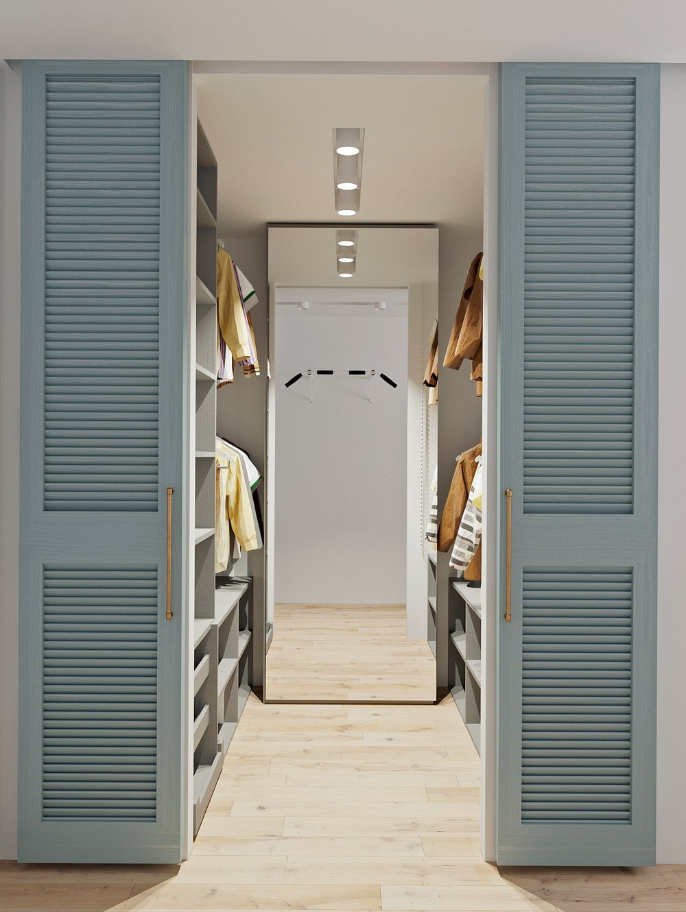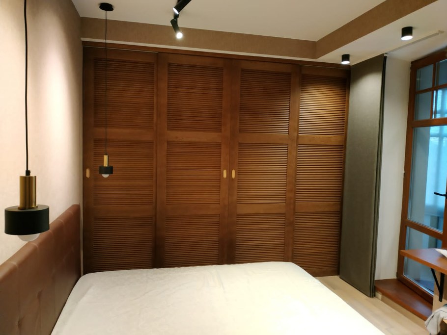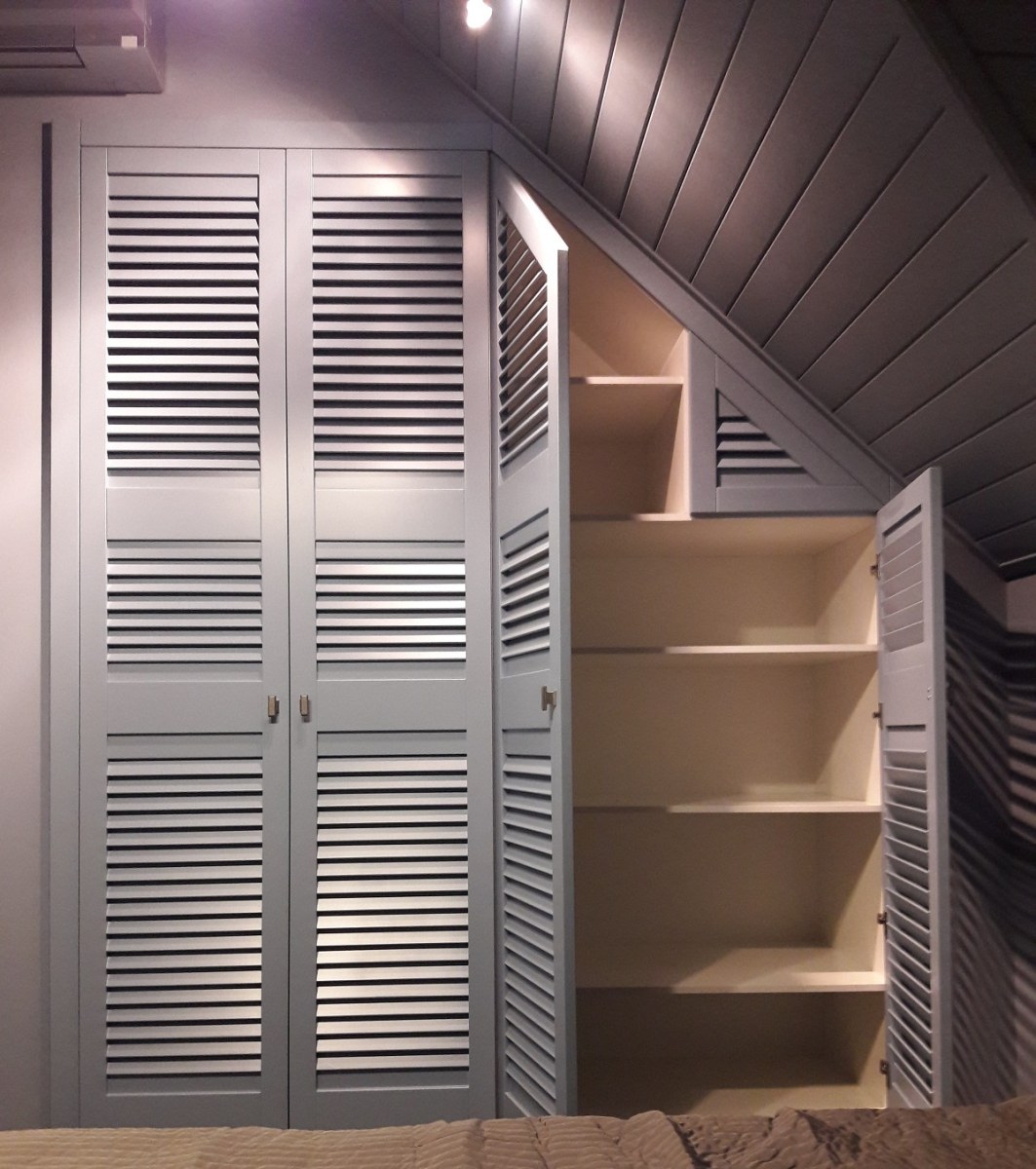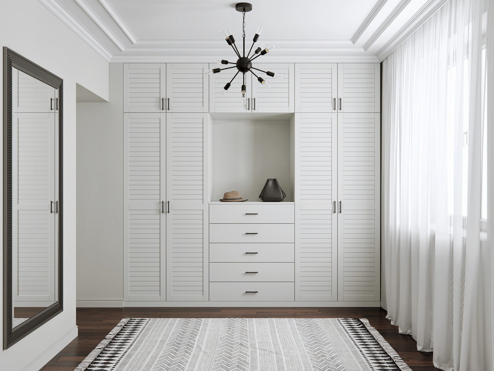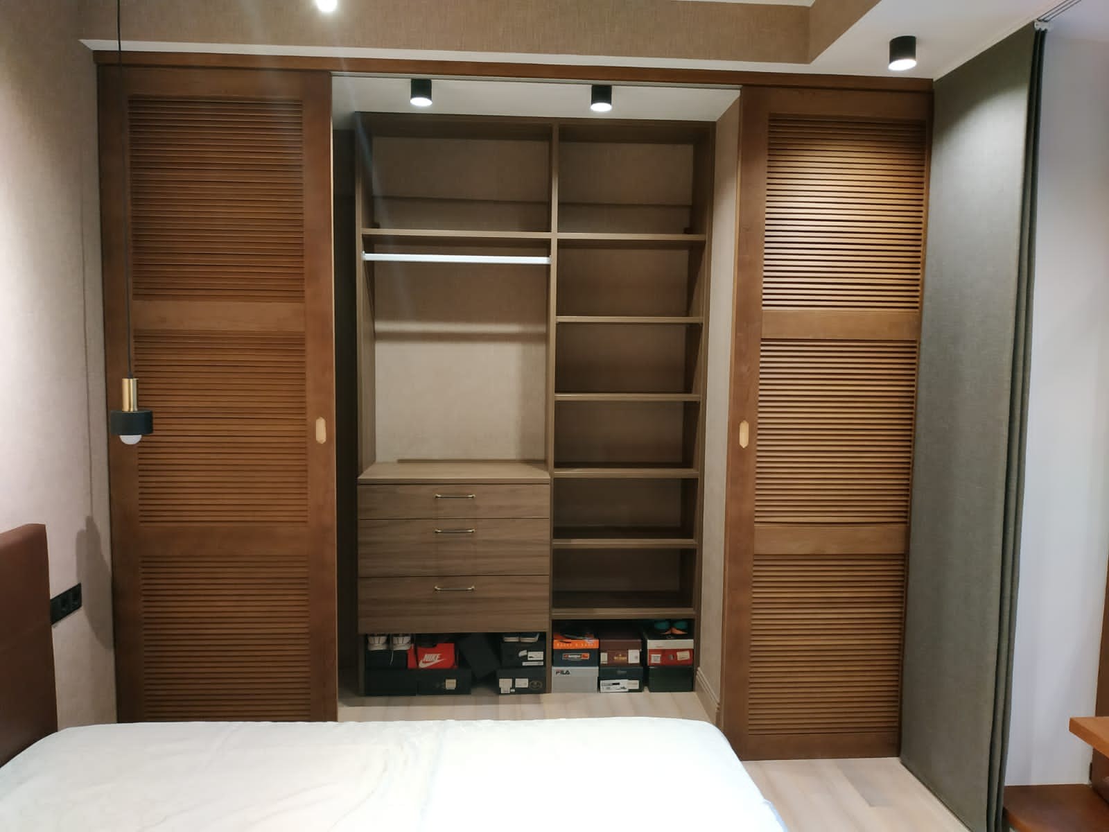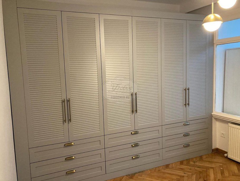 Встроенный шкаф в спальню с жалюзийными дверцами