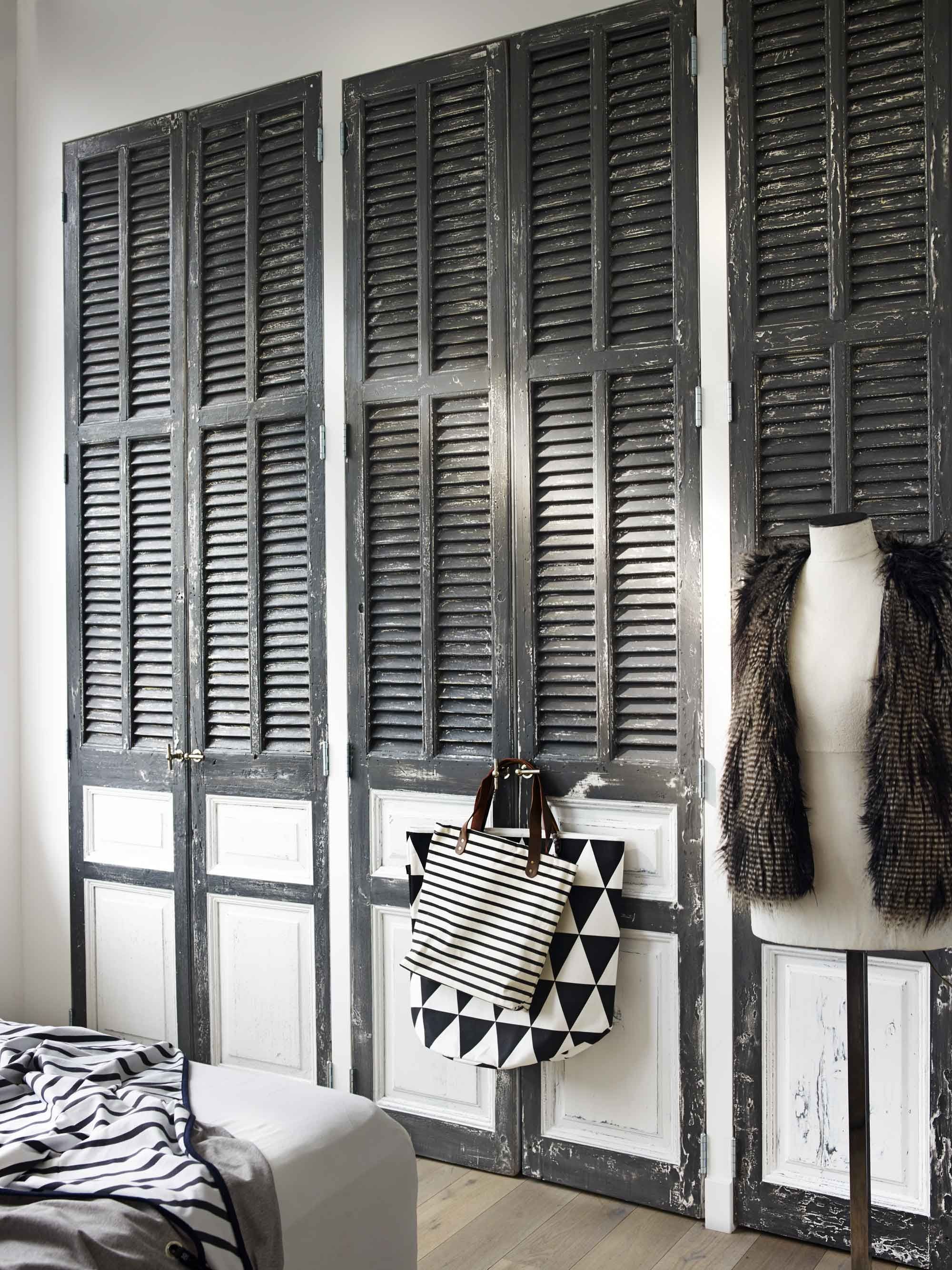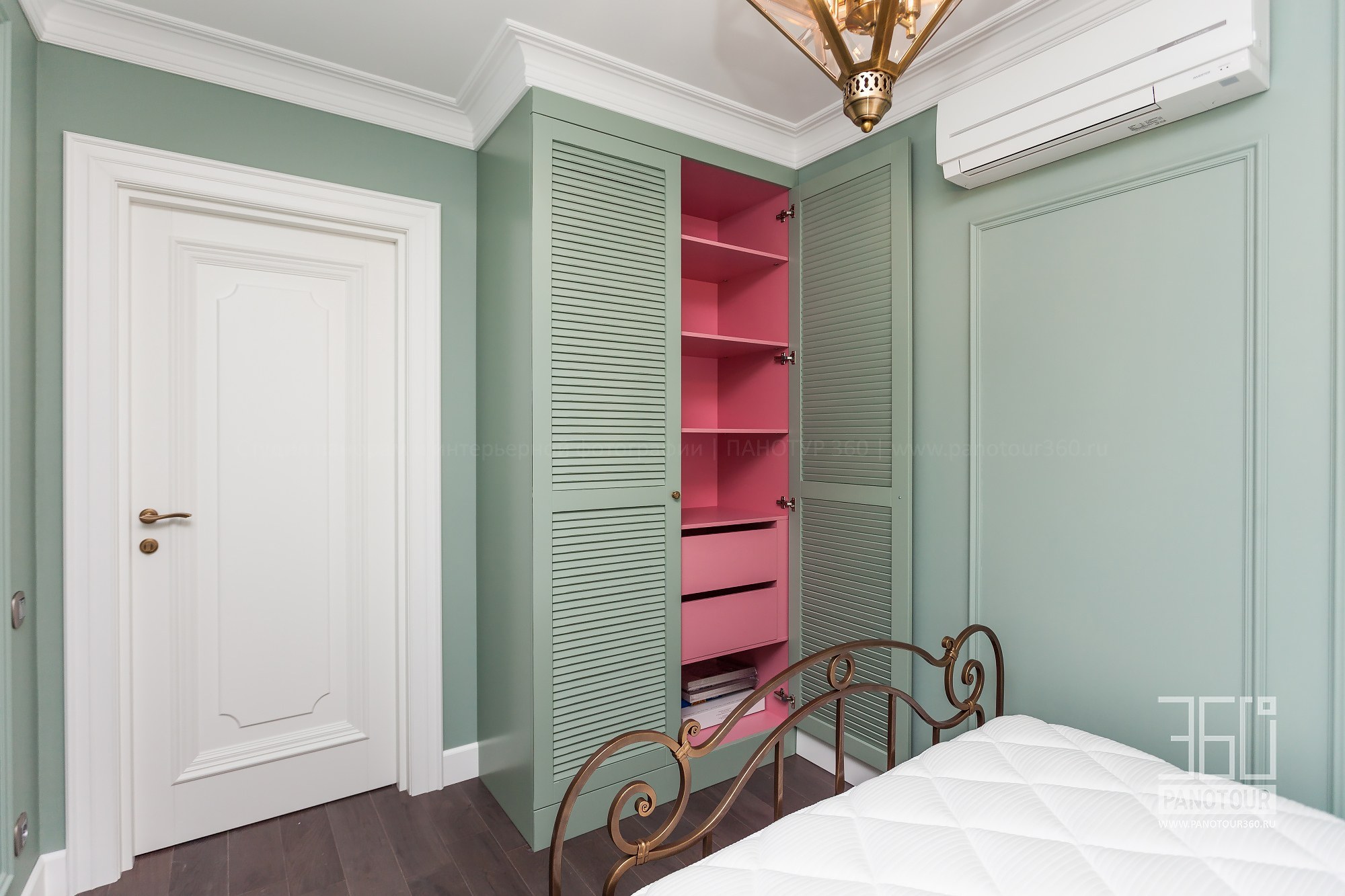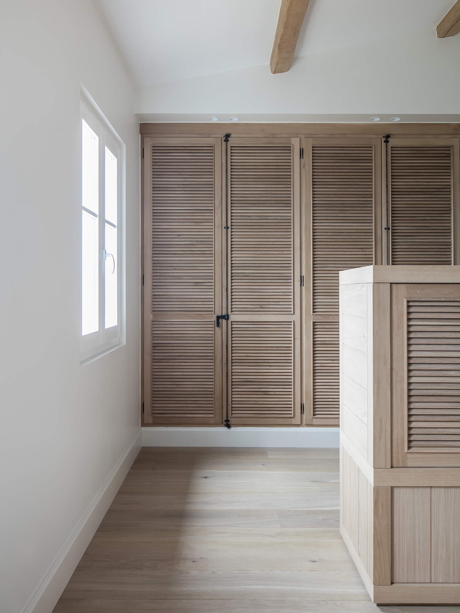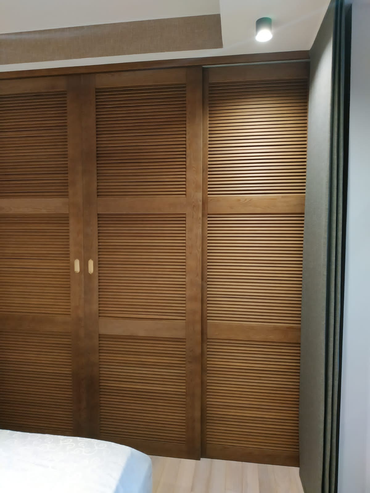 Встроенный шкаф в спальню с жалюзийными дверцами