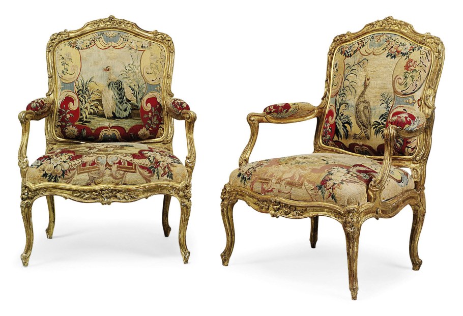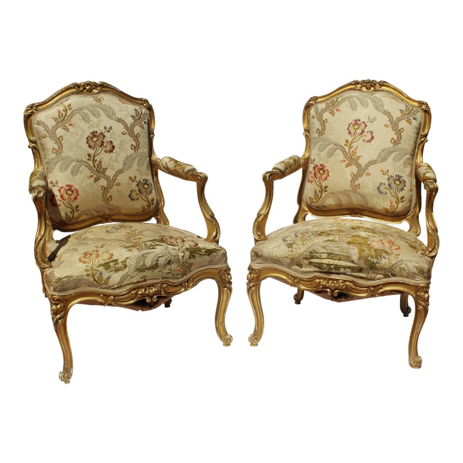 An important pair of Louis XV Style Carved Giltwood Armchairs (Fauteuils à la Reine), by François linke