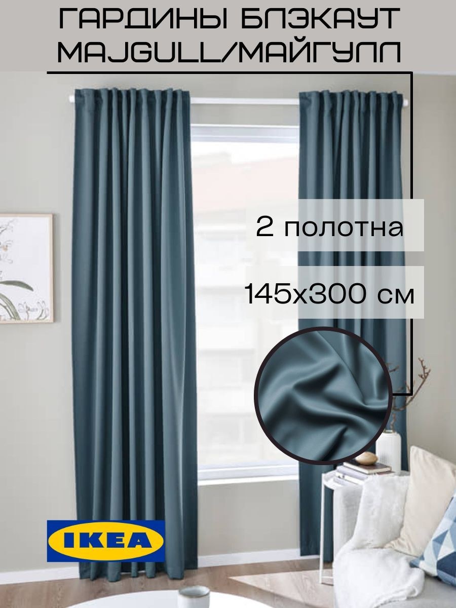 Majgull МАЙГУЛЛ гардины, блокирующие свет, 2 шт., темная бирюза145x300 см