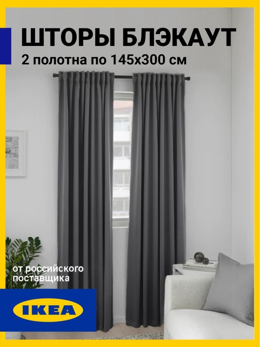 Marjun МАРЬЮН гардины, блокирующие свет, 2 шт., серый145x300 см 4 299 ₽