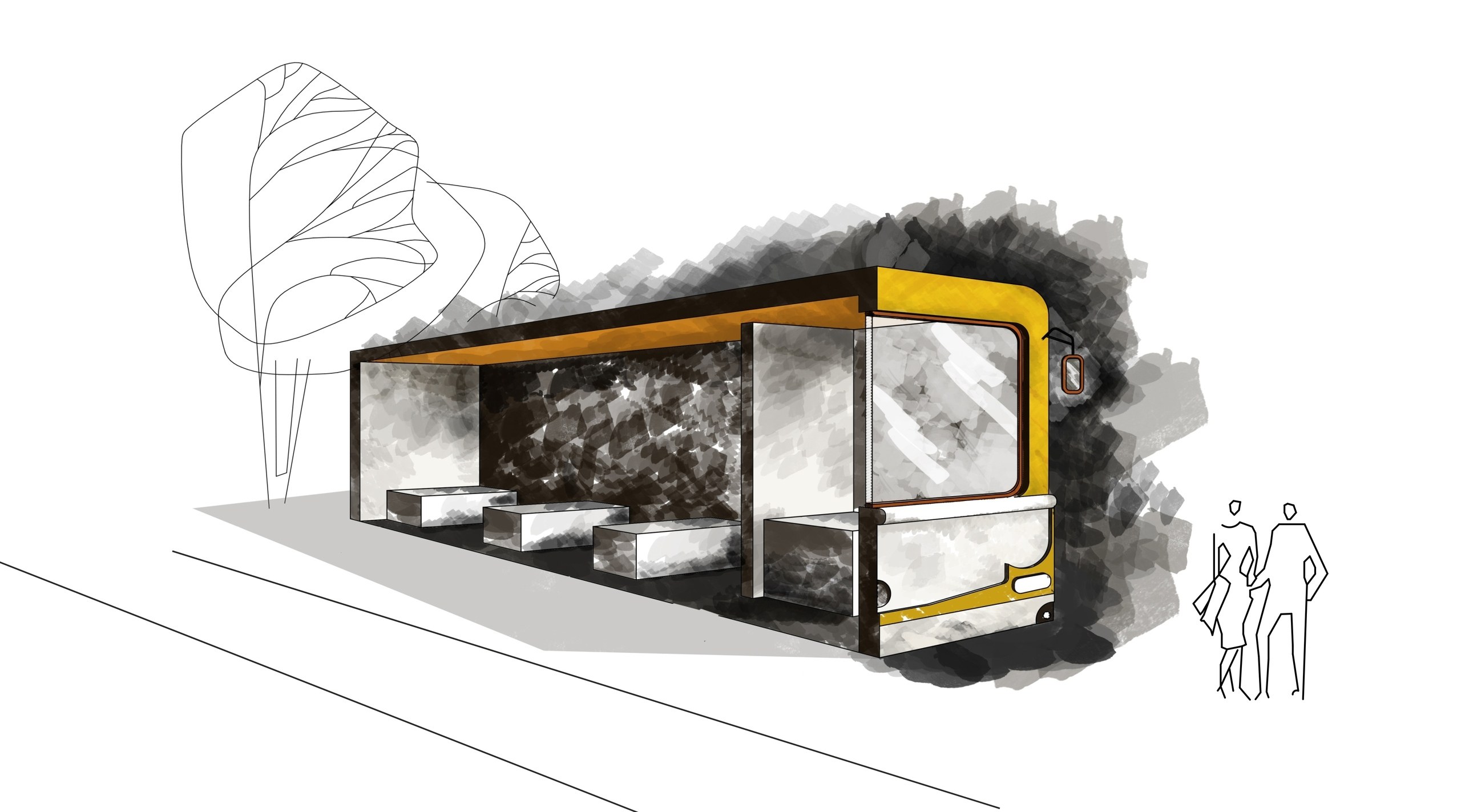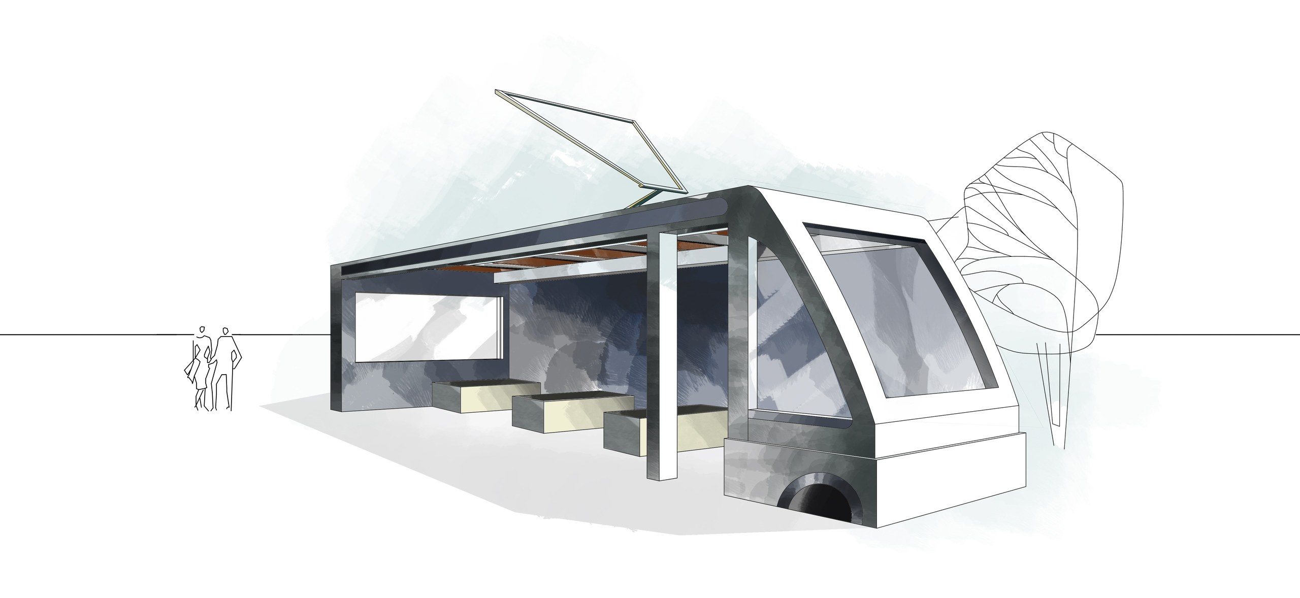 Эскиз автобусной остановки дизайнерский