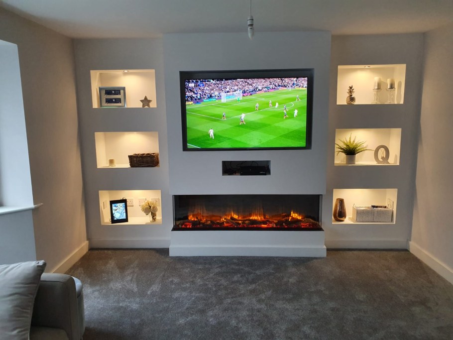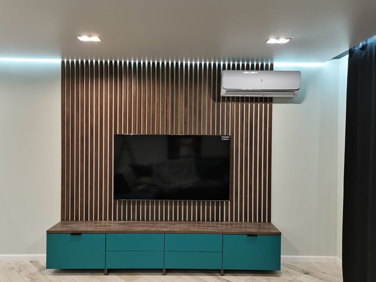 Декоративная штукатурка для внутренней отделки полки под телевизор