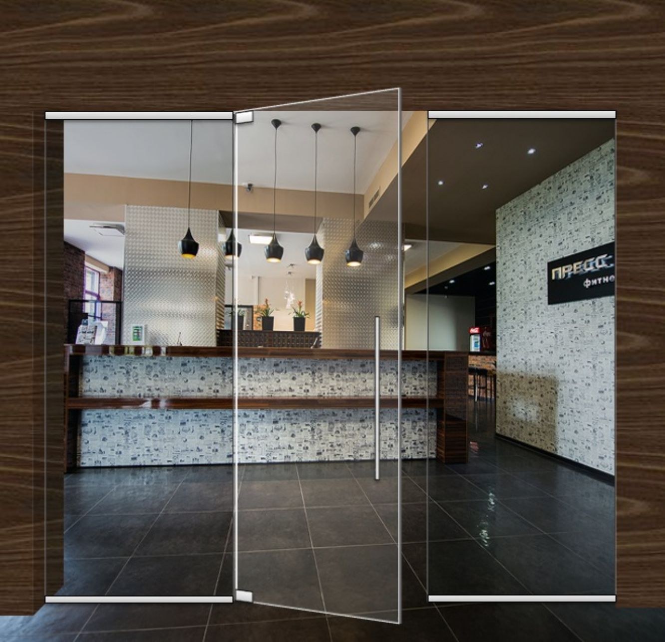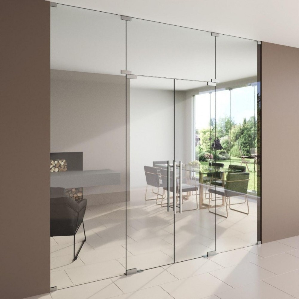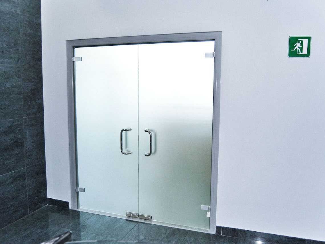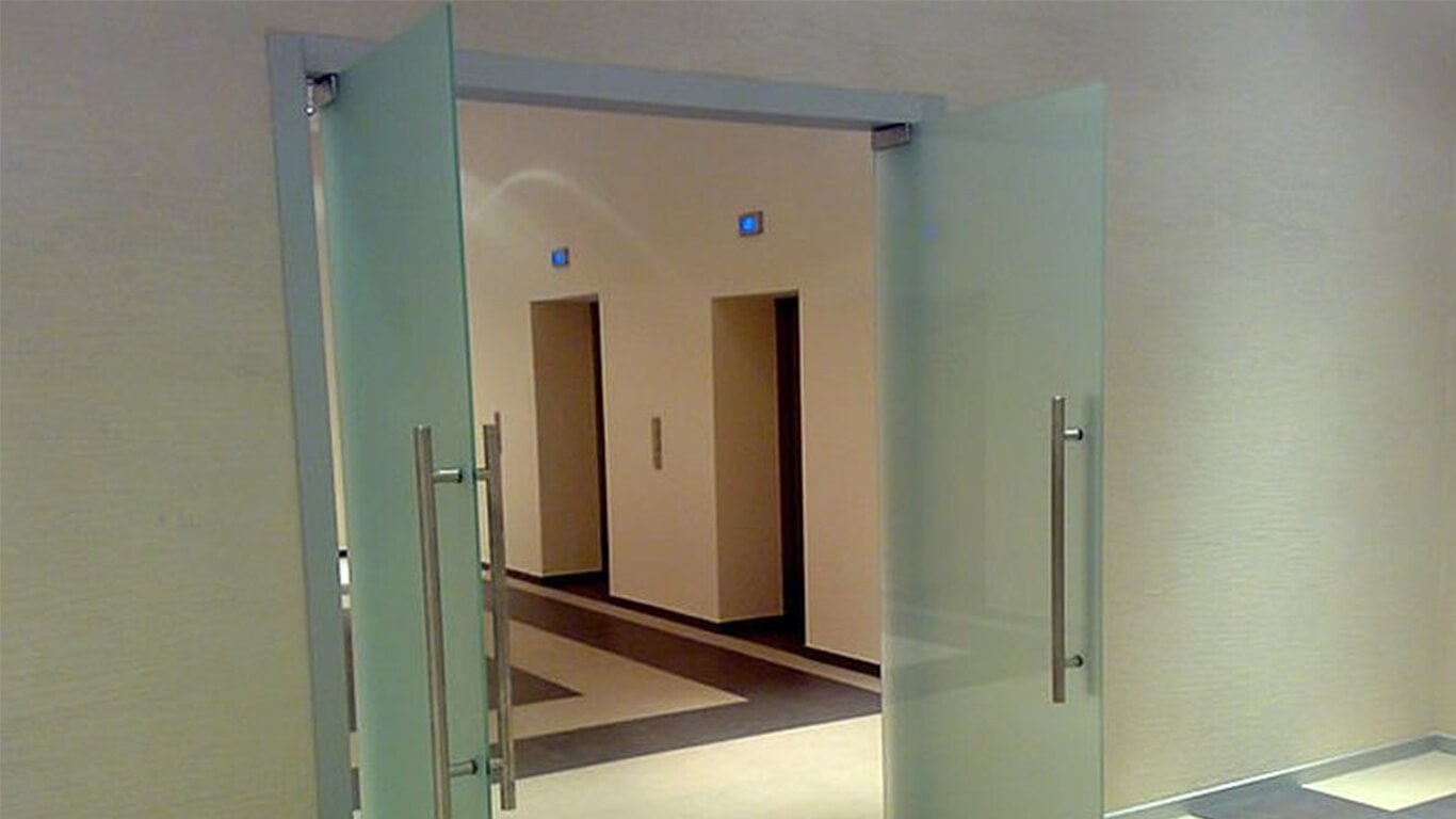 Двухстворчатые стеклянные маятниковые двери