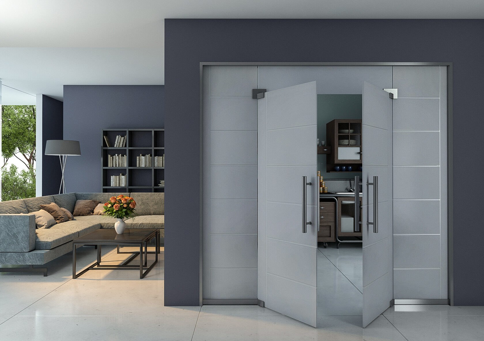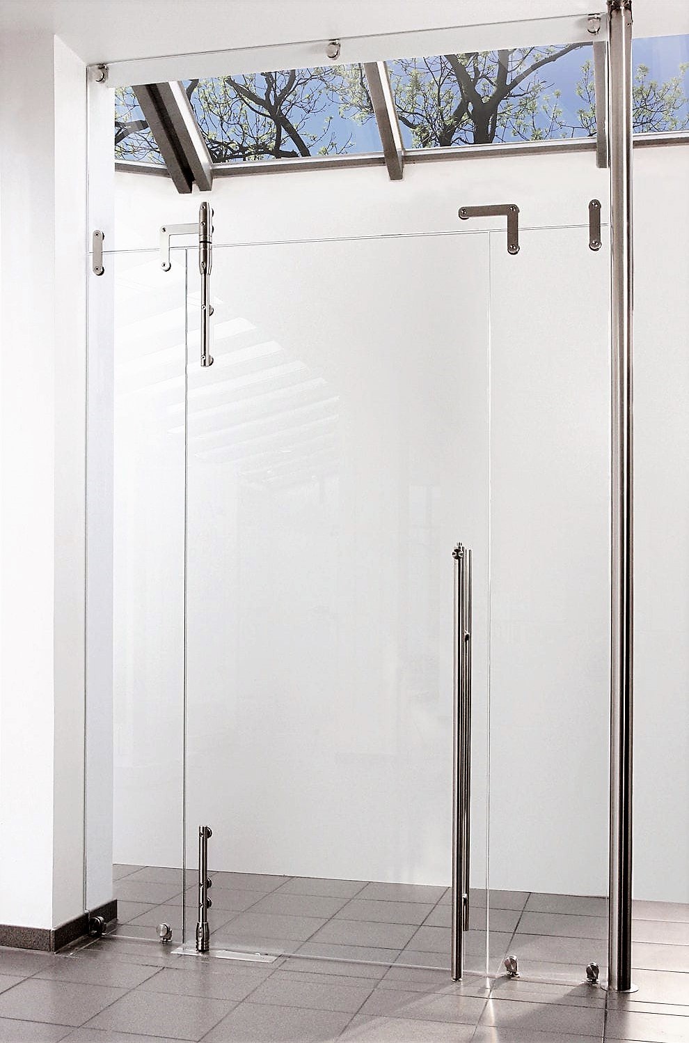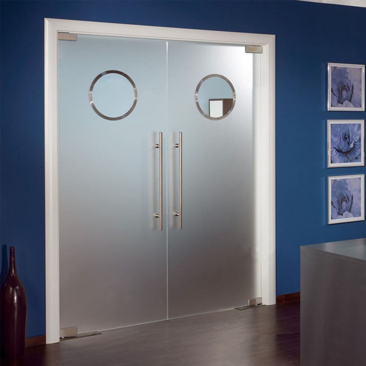 Двухстворчатые стеклянные маятниковые двери