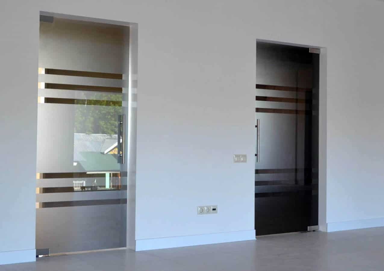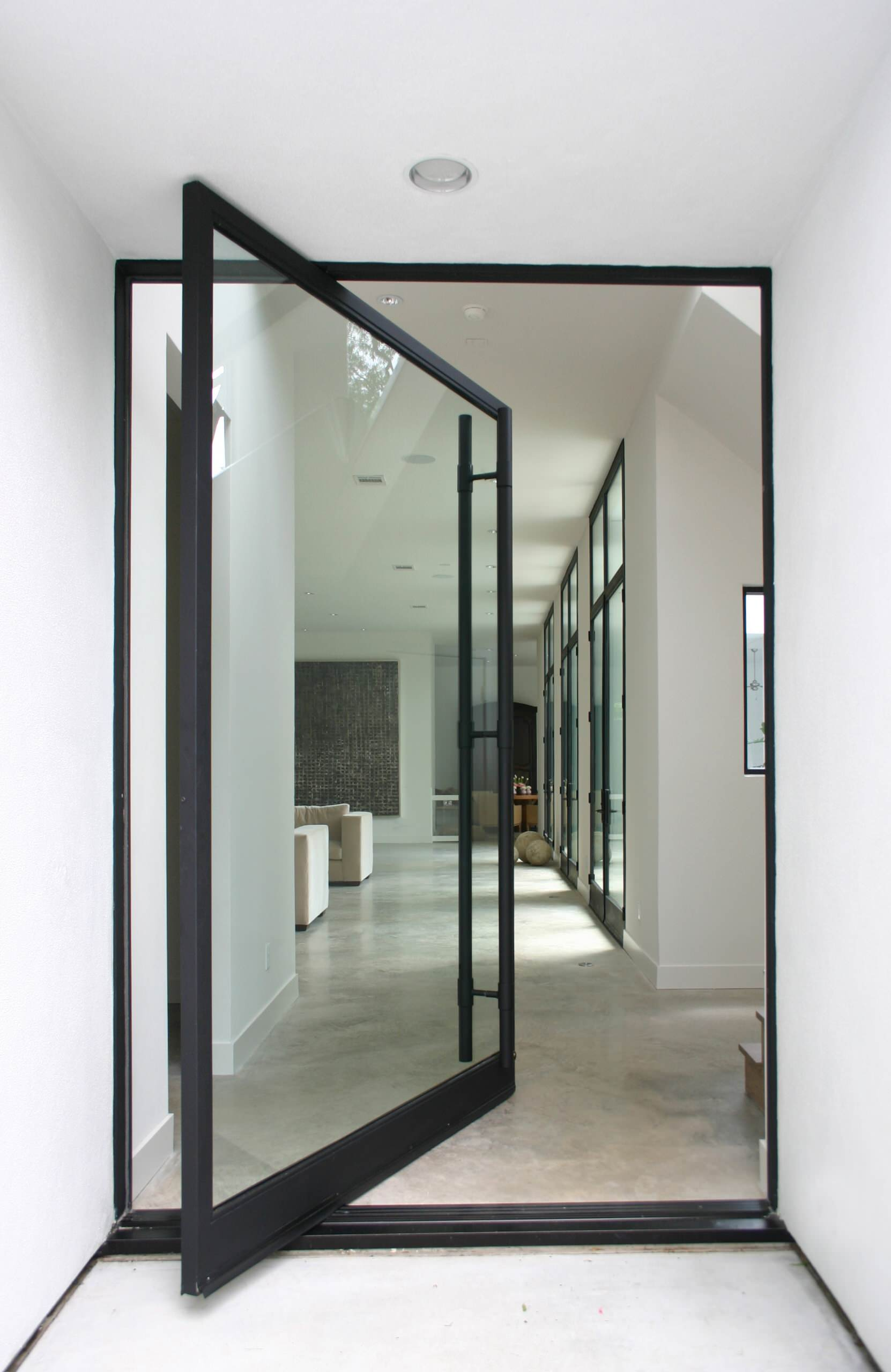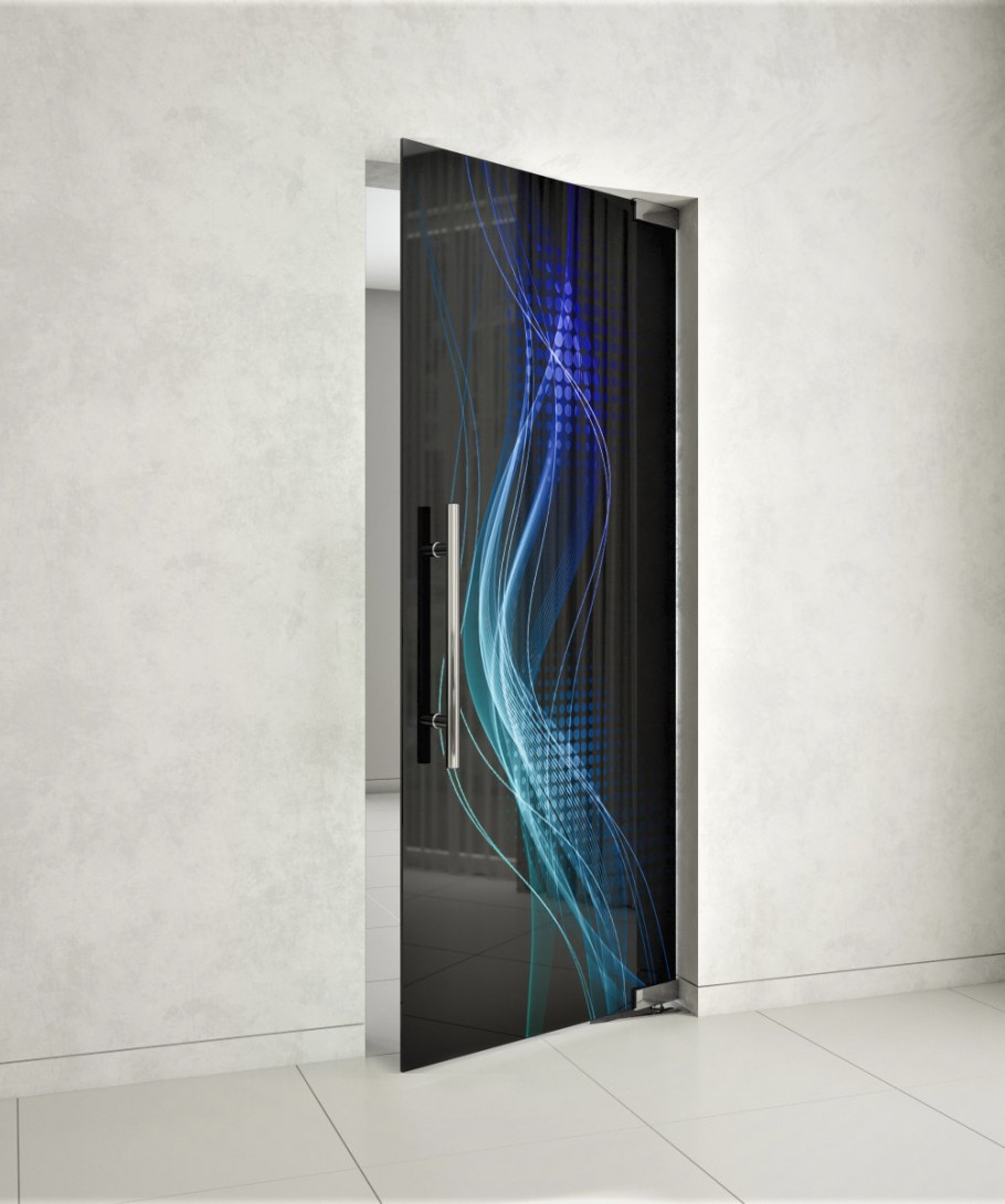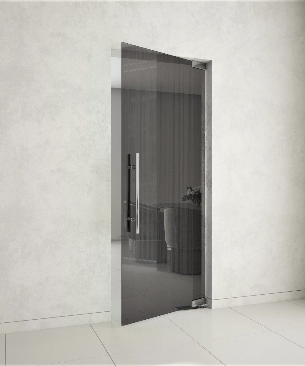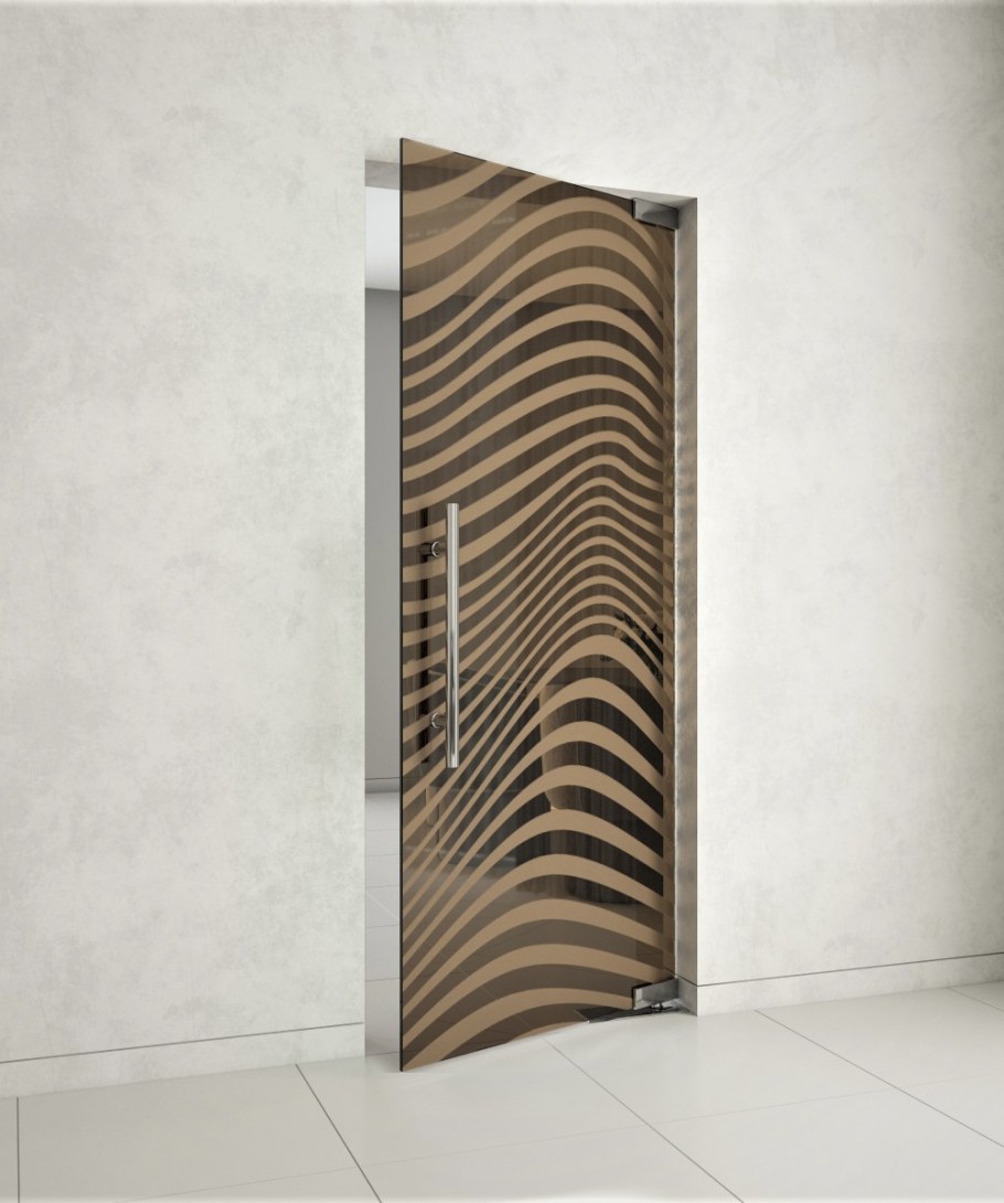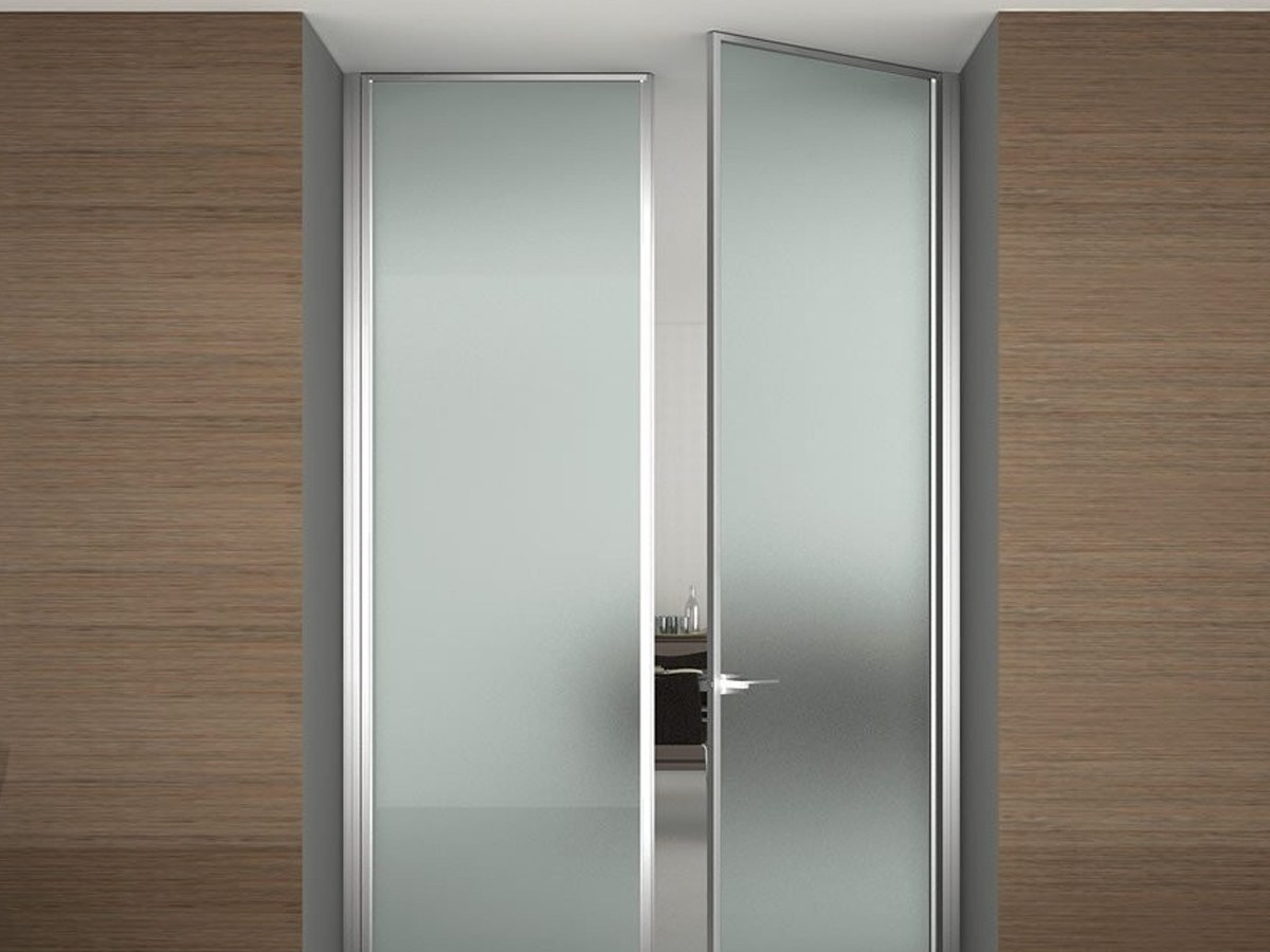 Маятниковая стеклянная дверь (74 фото)