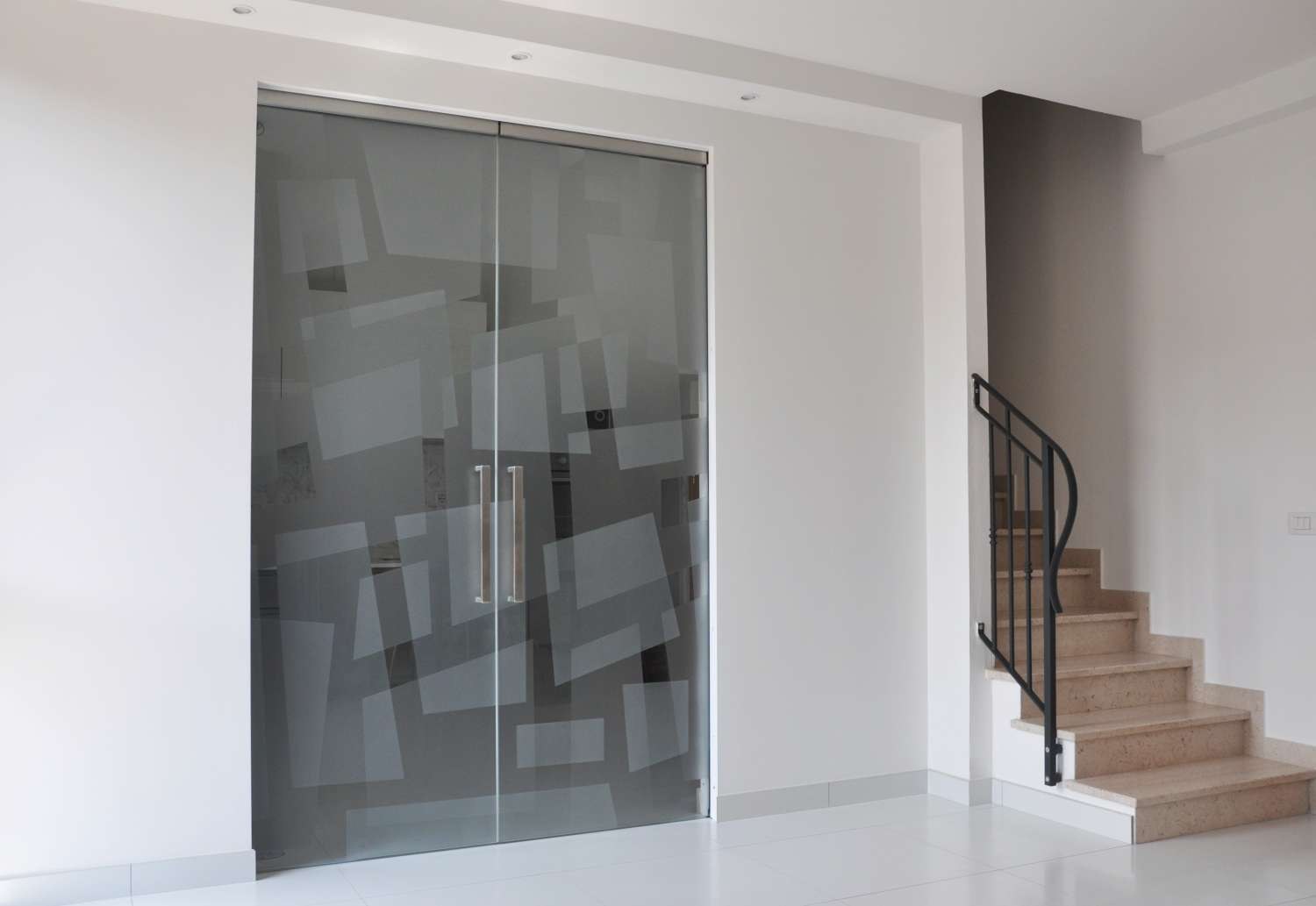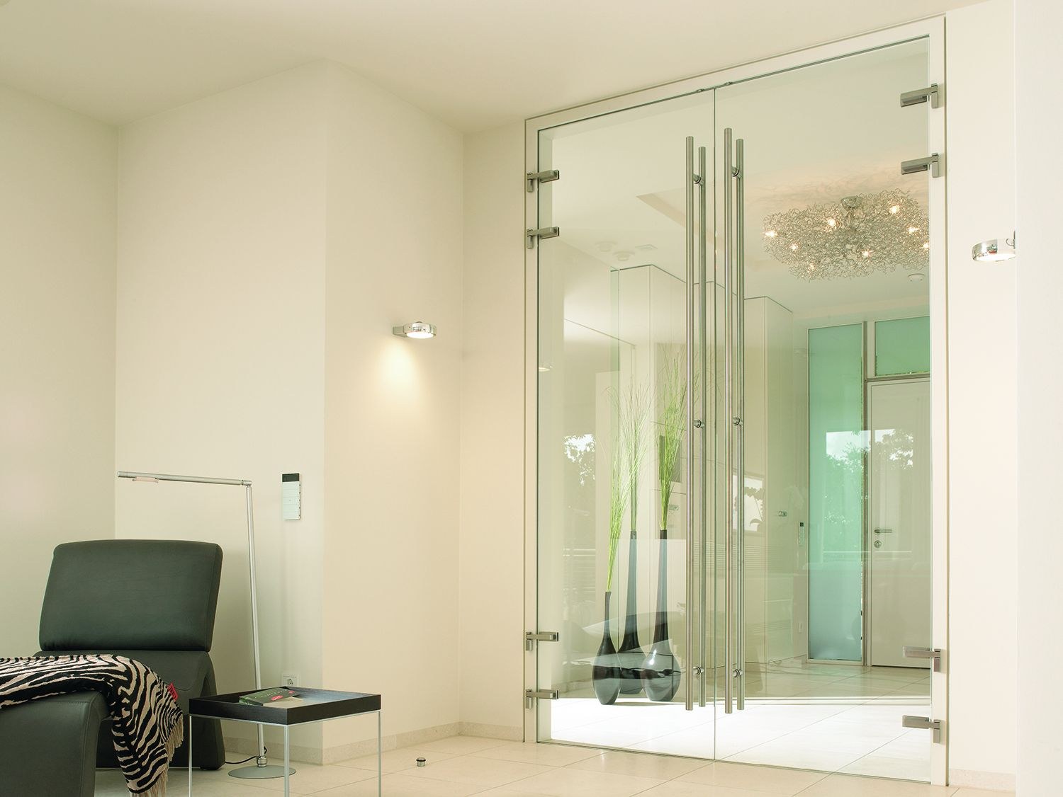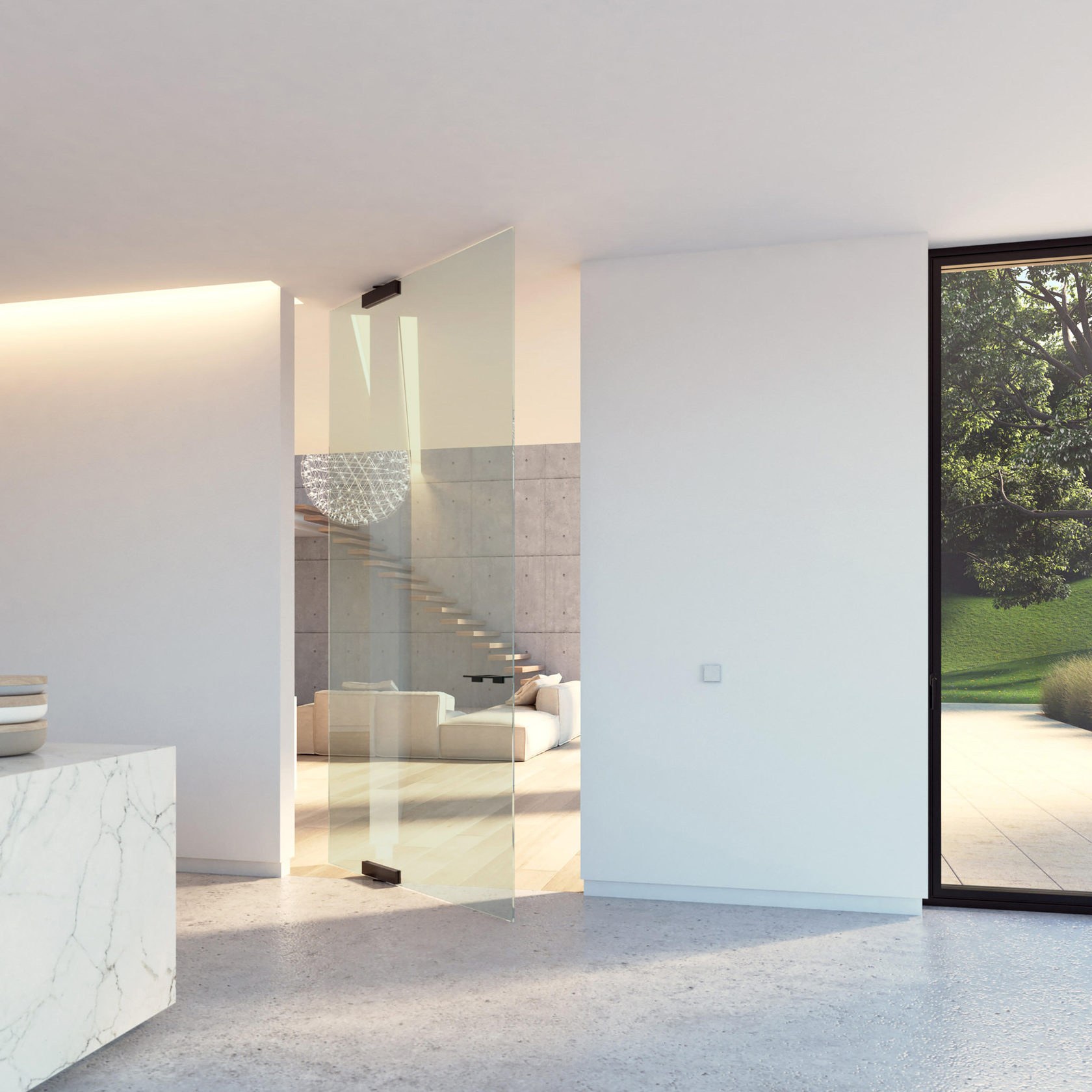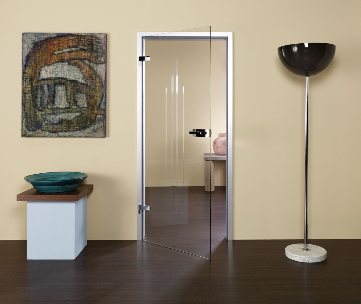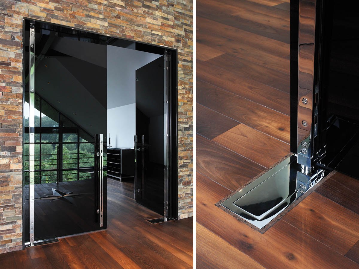 Маятниковая стеклянная дверь (74 фото)