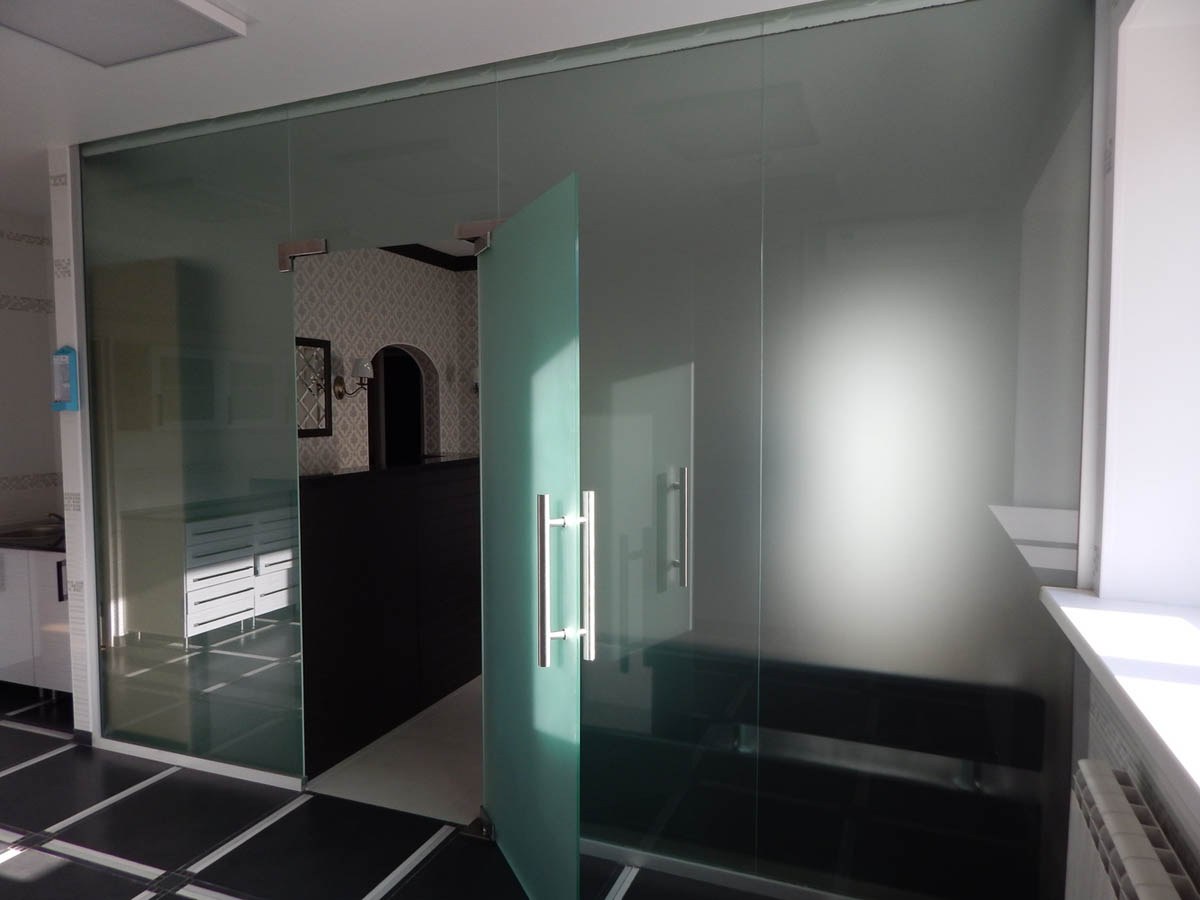Стеклянные перегородки с доводчиком