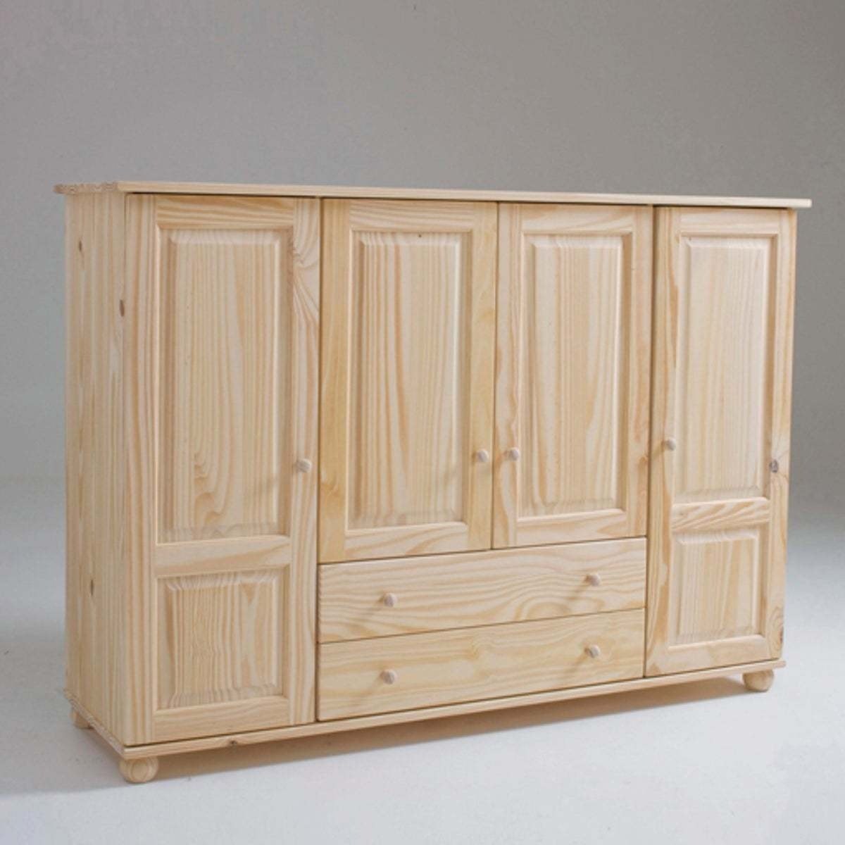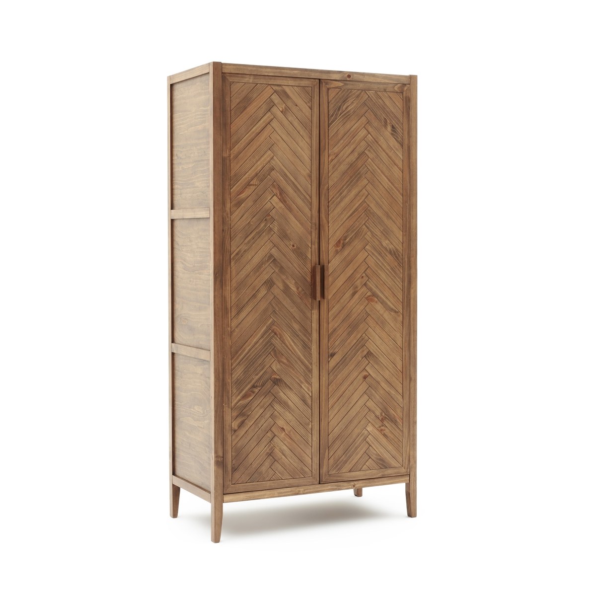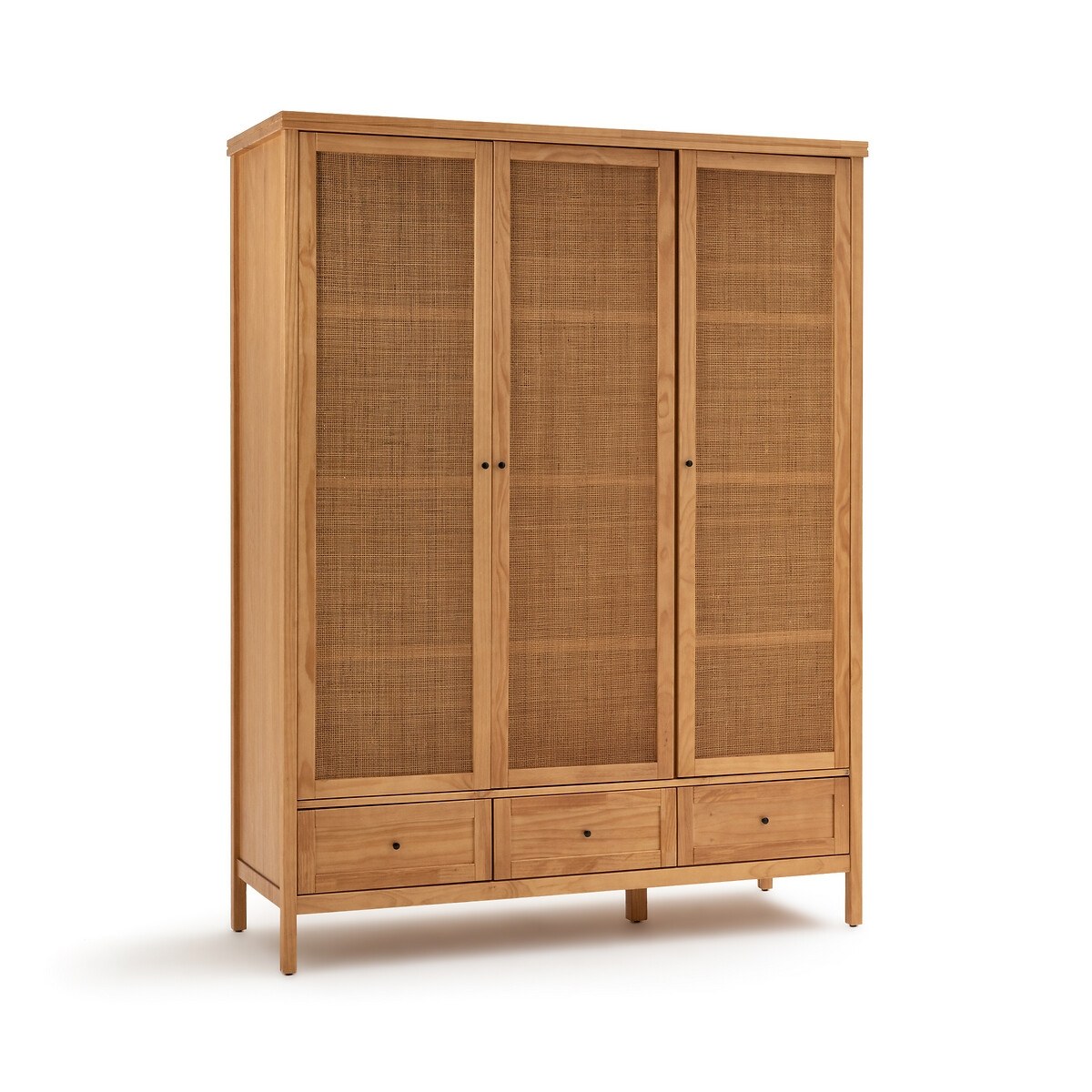Шкаф из массива сосны и плетеного материала Gabin бежевого цвета