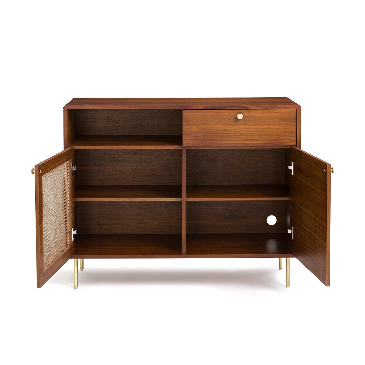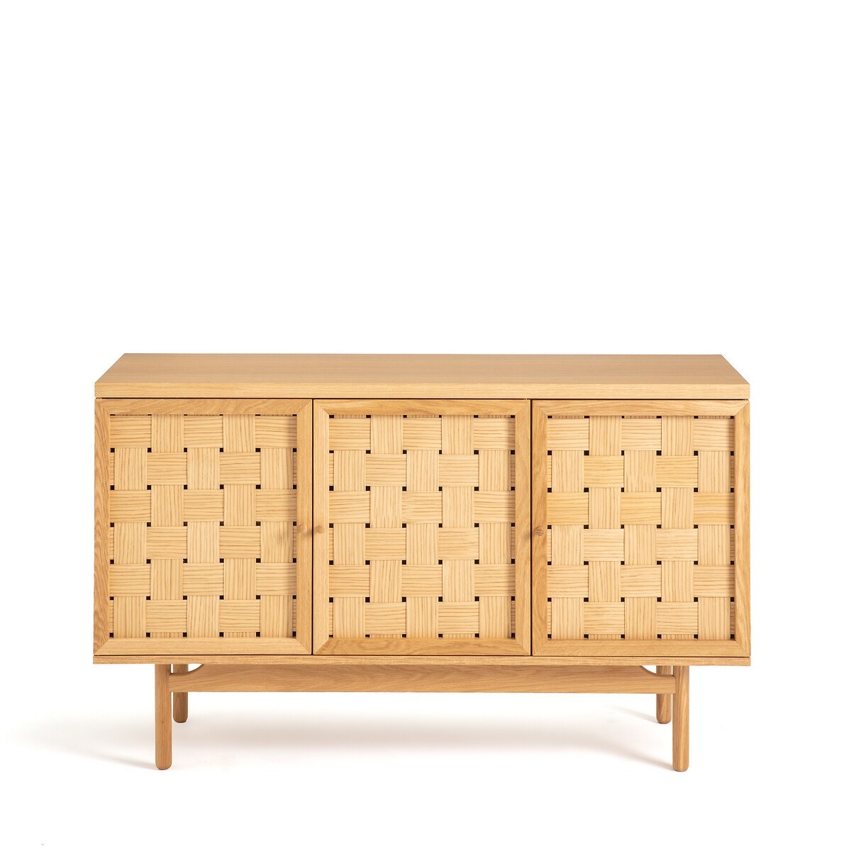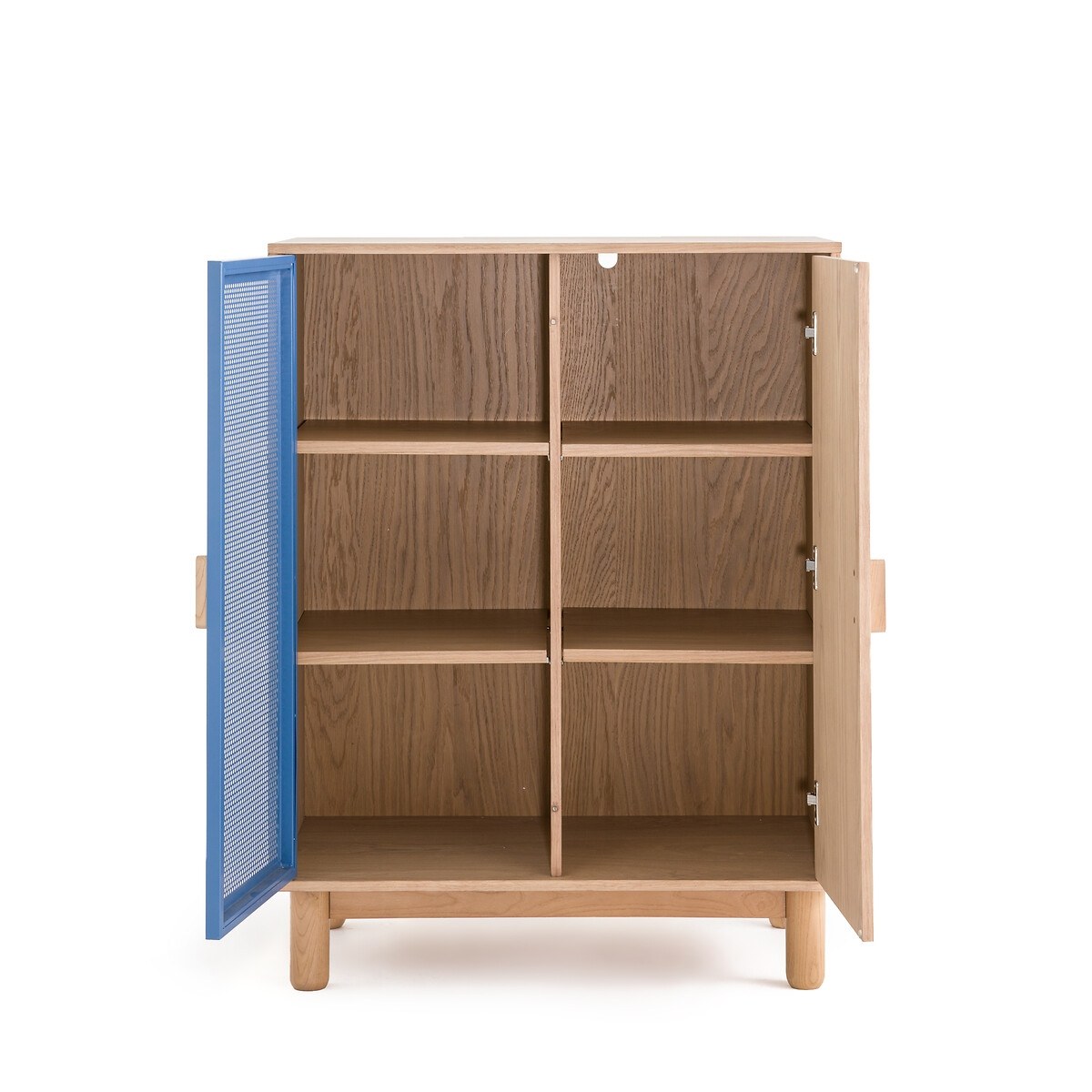 Шкаф из массива сосны и плетеного материала Gabin бежевого цвета