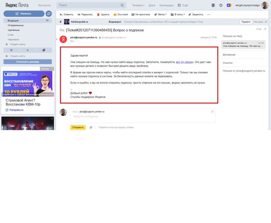 Ссылка на профиль Яндекса