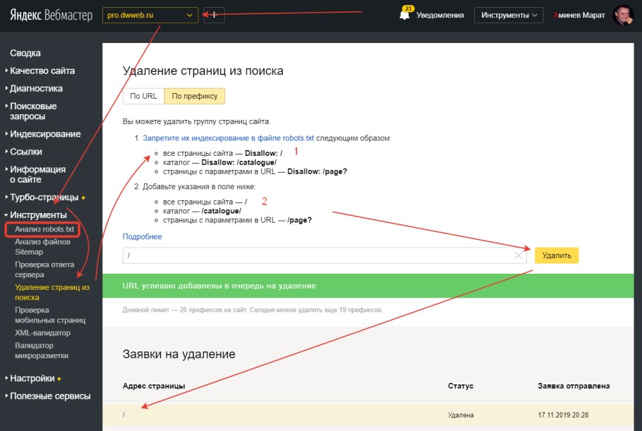 Удаление сайта из индекса Яндекса