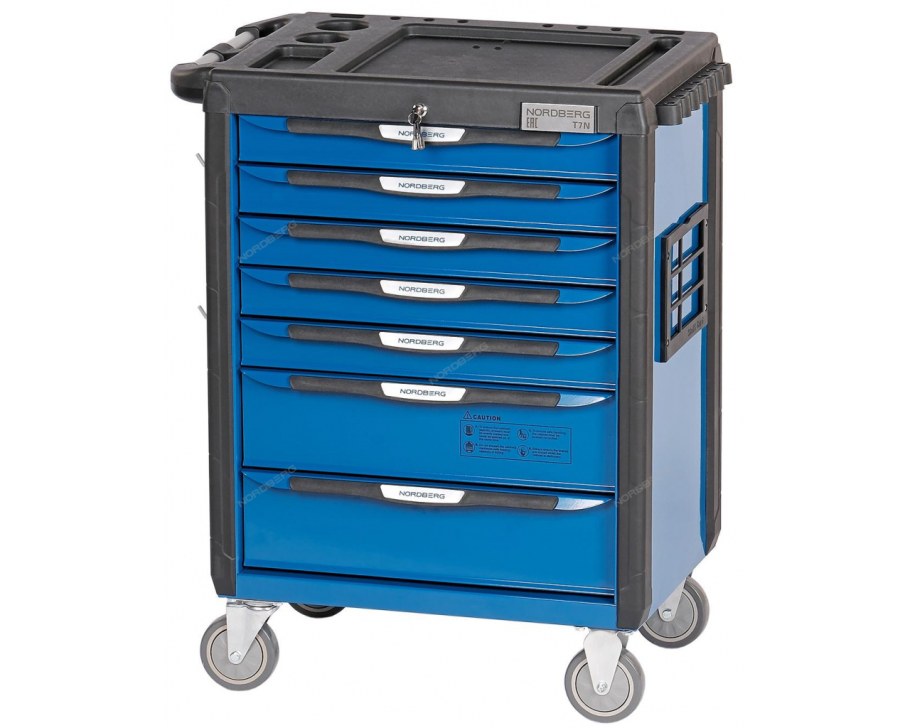 Тележка инструментальная с центральным замком, 7 ящиков (серая) TBA-520gg