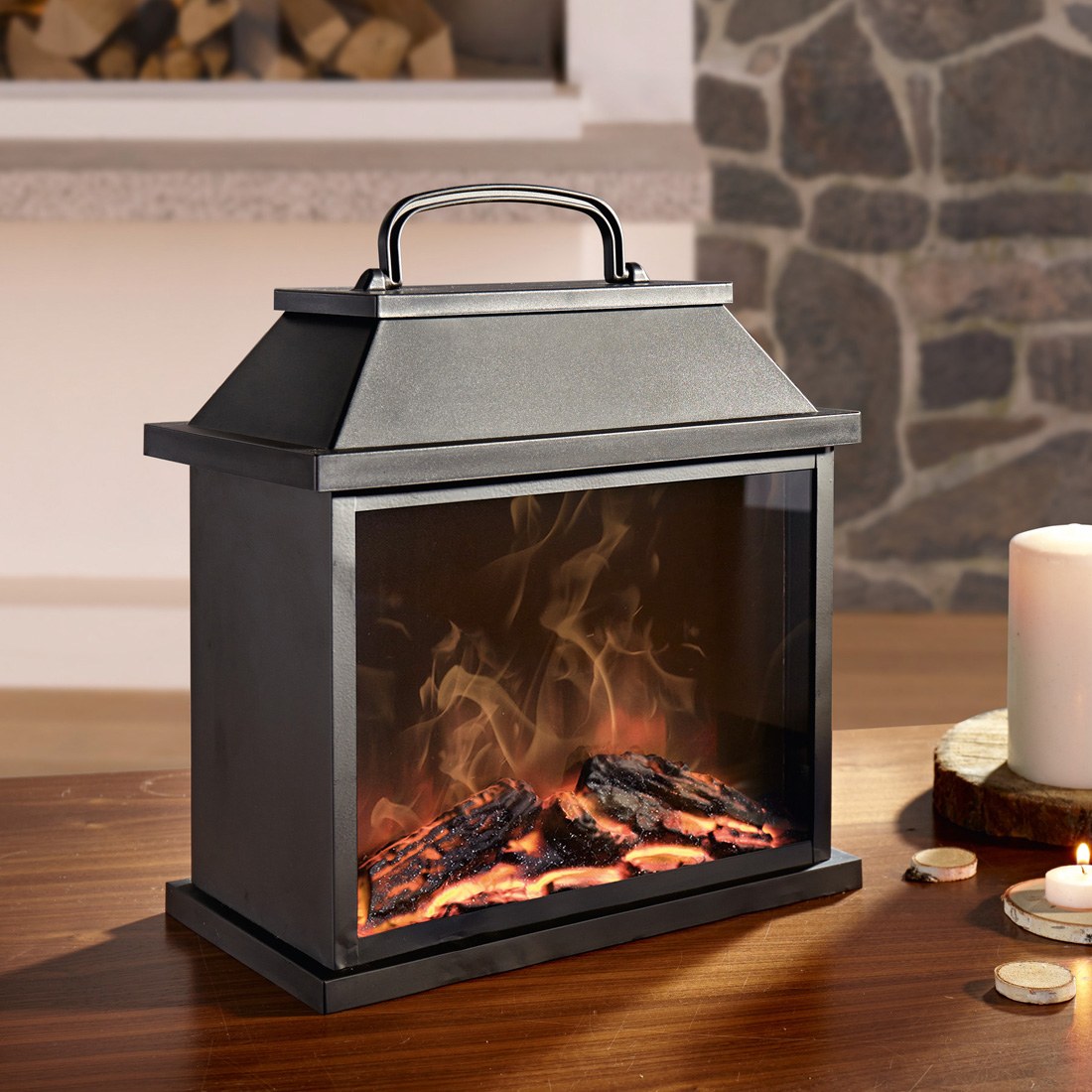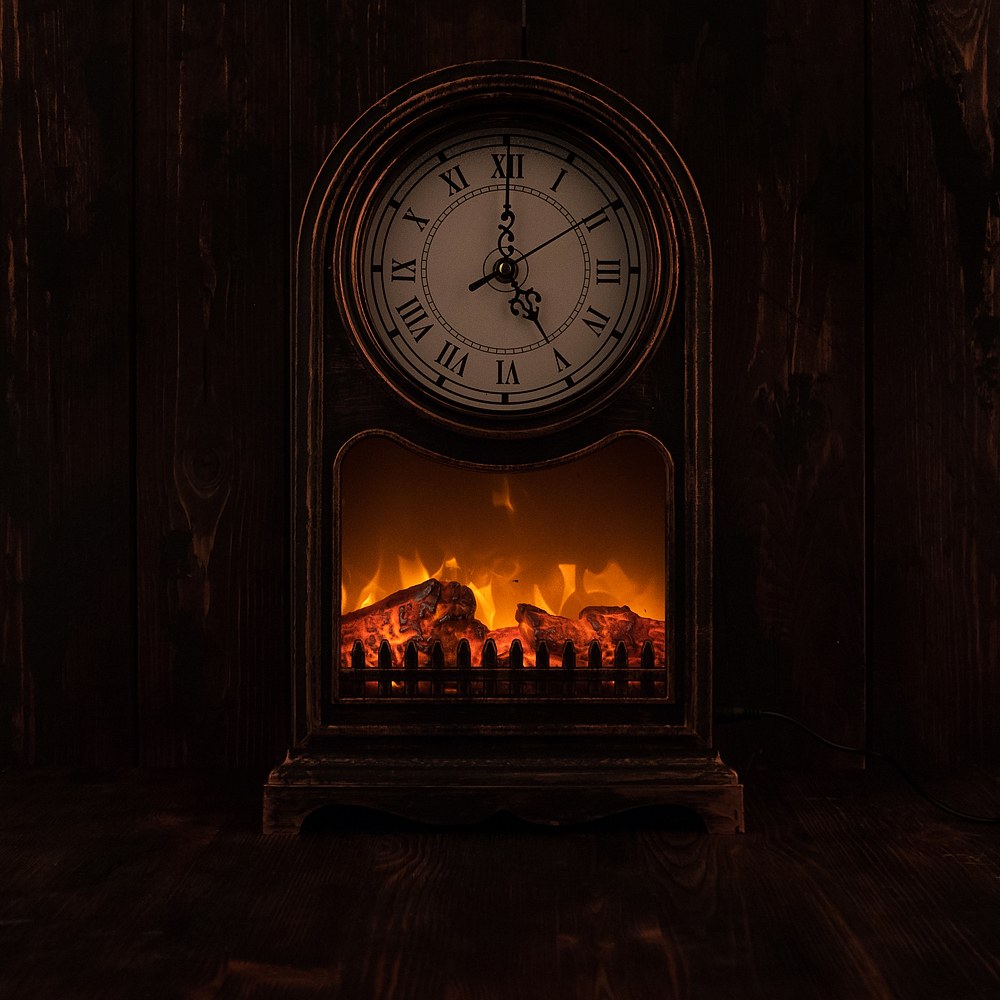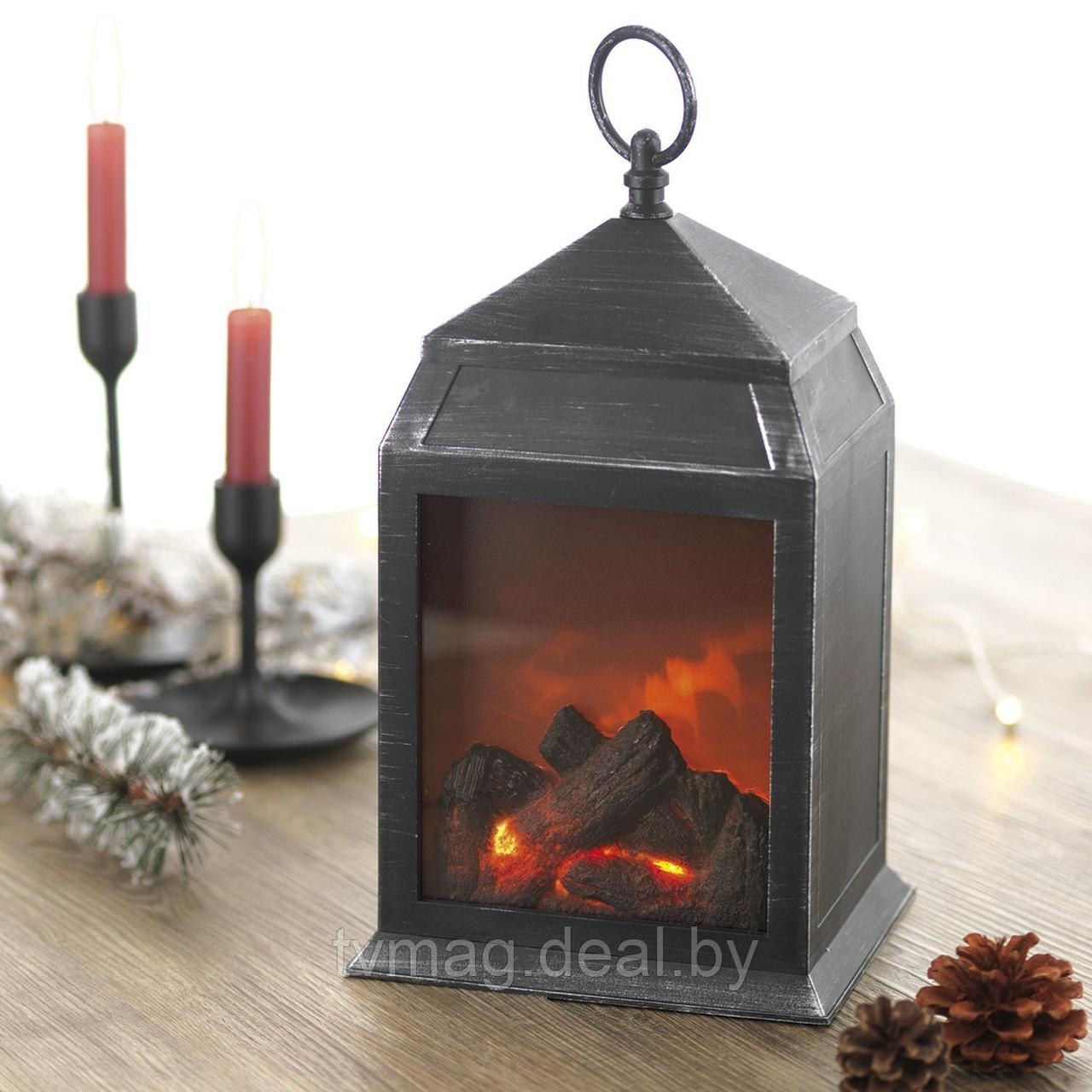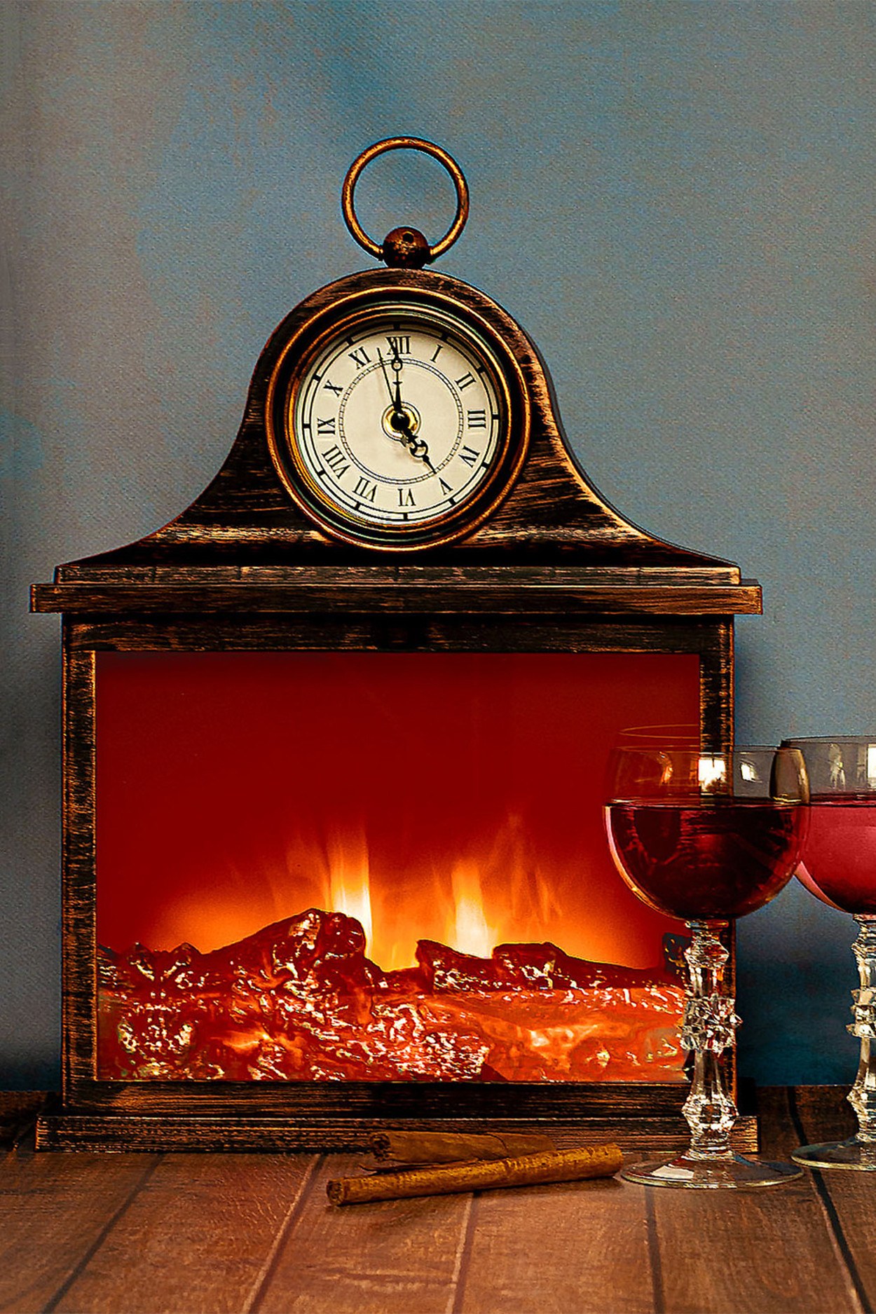 Фонарь с имитацией огня "камин с часами", 30*15*12см