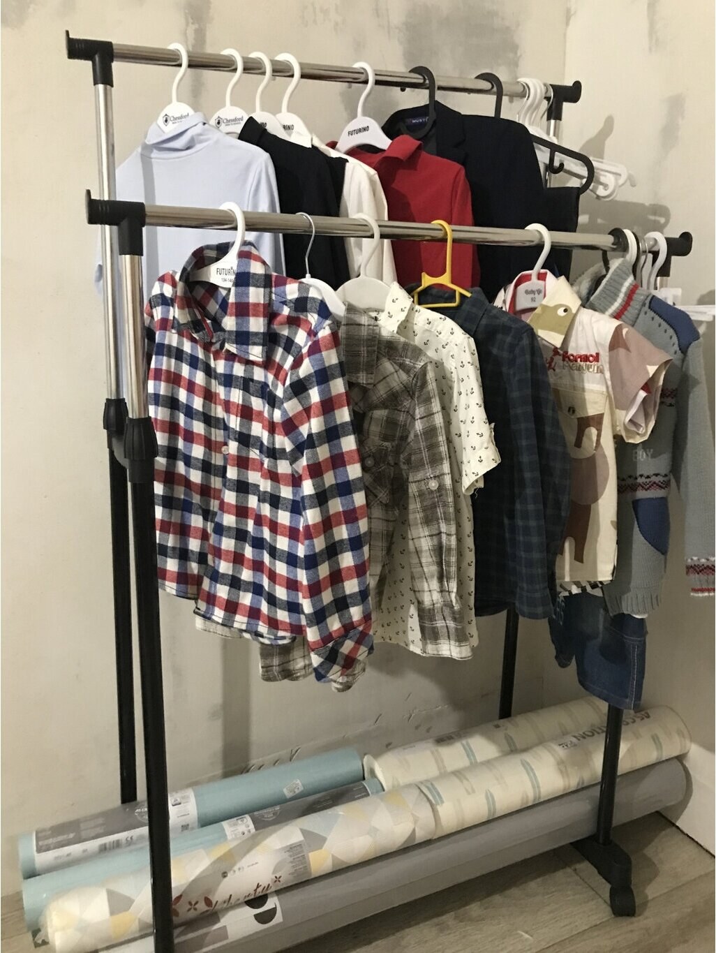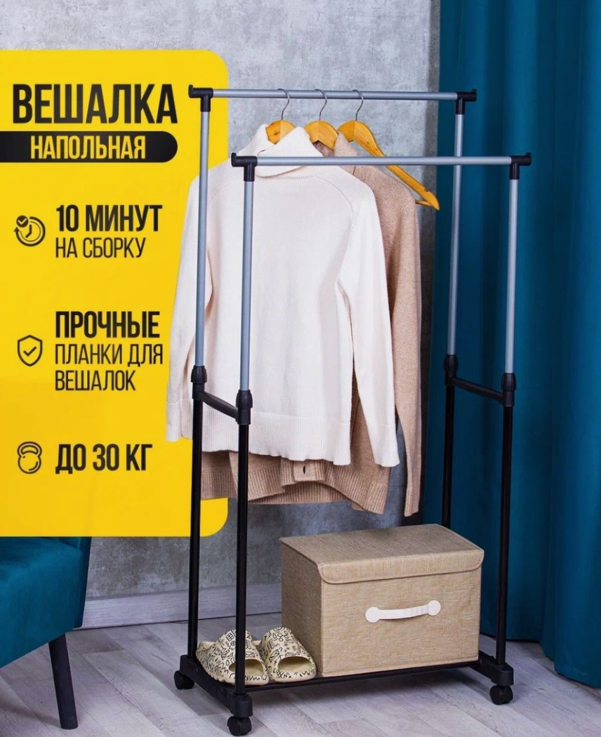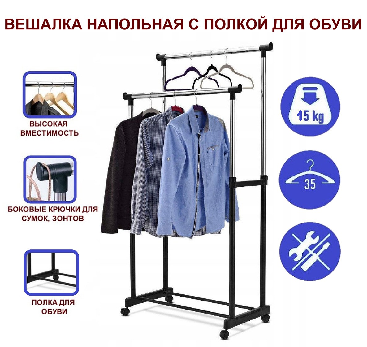 Вешалка напольная gr-03a (2 перекладины, с сеткой внизу), размер: 75*42*90-160см