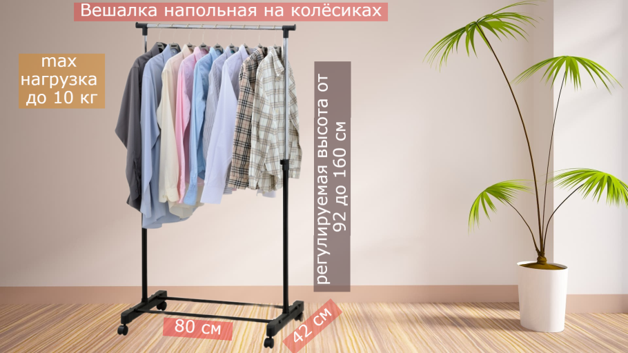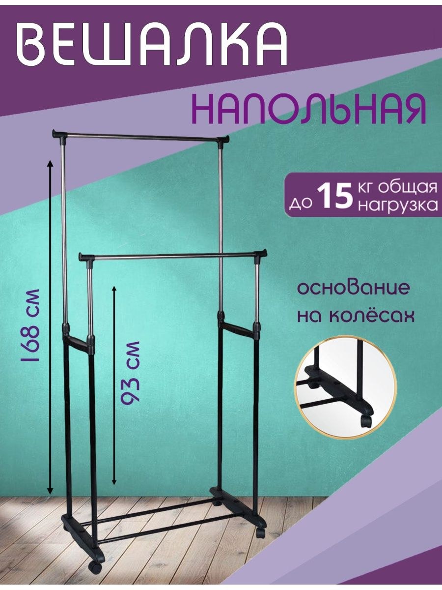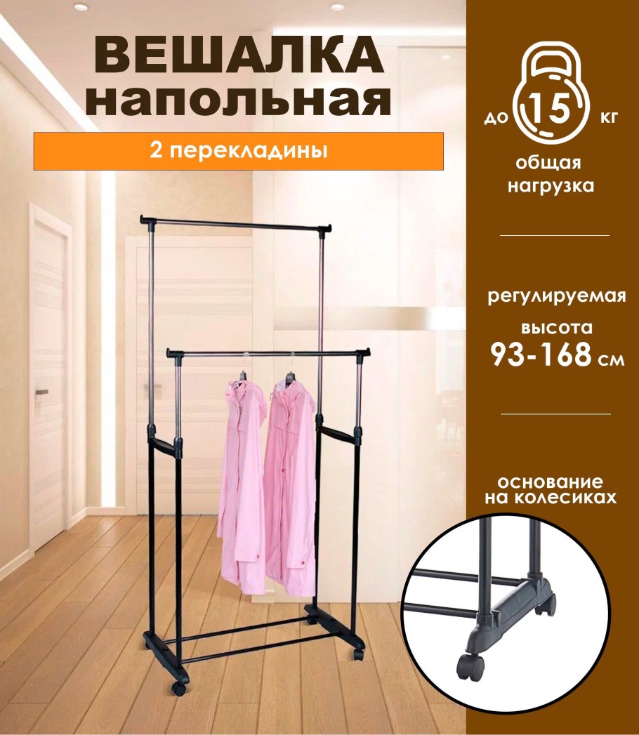 Вешалка напольная для одежды на колёсиках, 110(176)×44×95(171)